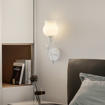 Moderne, minimalistische, florale Eisenglas-Wandleuchte mit 1 Licht für Schlafzimmer
