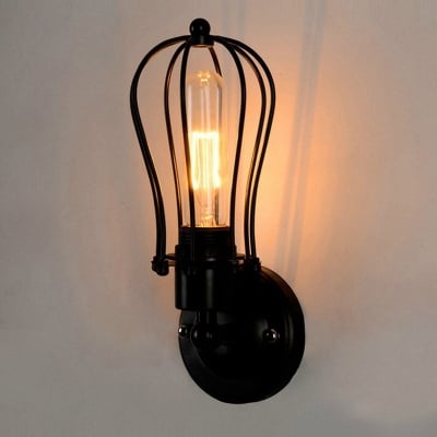 Zeitgenössische industrielle Wandleuchte mit Eisenrahmen und 1/2-Licht für das Wohnzimmer