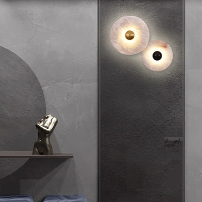 Moderne minimalistische runde Kupfer-Marmor-LED-Wandleuchte für Schlafzimmer