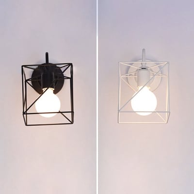 Zeitgenössische rustikale Eisen-Wandleuchte mit quadratischem Rahmen und 1 Licht für das Wohnzimmer
