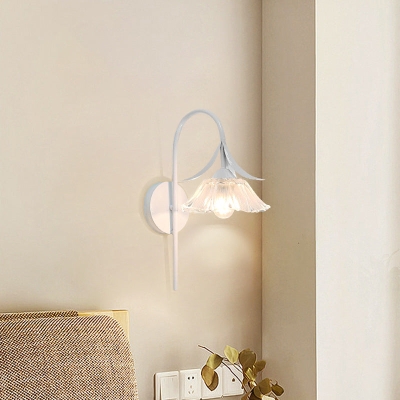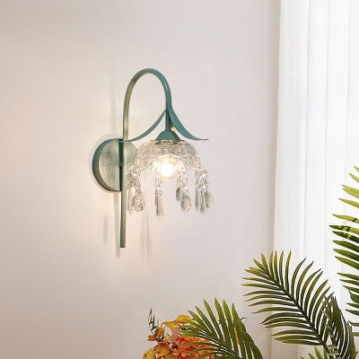 Zeitgenössische kreative Eisen-Lotusblumen-Glasschirm-Kristall-Wandleuchte mit 1 Licht für Wohnzimmer