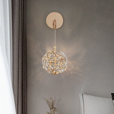 Zeitgenössische Luxus-Kristall-Hardware, runder Schirm, Löwenzahn-Design, LED-Wandleuchte für Wohnzimmer