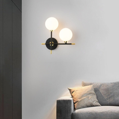 Zeitgenössische skandinavische Glaskugel-Eisen-Wandleuchte mit 2 Leuchten für den Flur