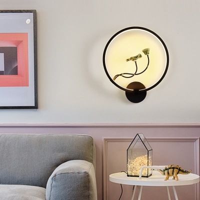 Zeitgenössische nordische runde LED-Wandleuchte aus Eisenharz für Schlafzimmer