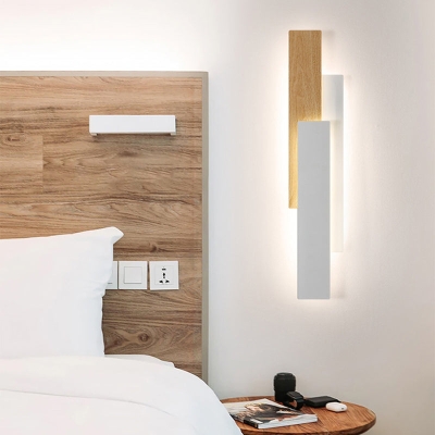 Zeitgenössische Einfachheit, Imitation von Holzmaserung, Textur, geometrisches Eisen, rechteckige LED-Wandleuchte für Wohnzimmer