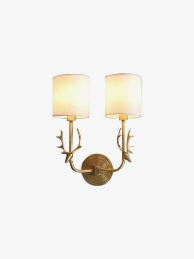 Wandleuchte mit Hirschkopf aus Messing