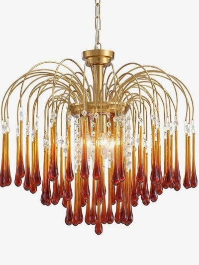 Kronleuchter mit mehrköpfigem Stempel aus maltosefarbenem Kristall