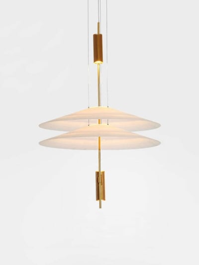 Olivia CeraAut Moderne Art Deco Metall- und Keramik-Kronleuchter, Gold