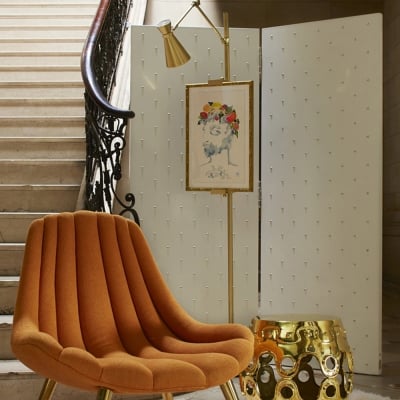 Salgado Minimalistic Gold Floor Lamp, Metal & Marble, Living room