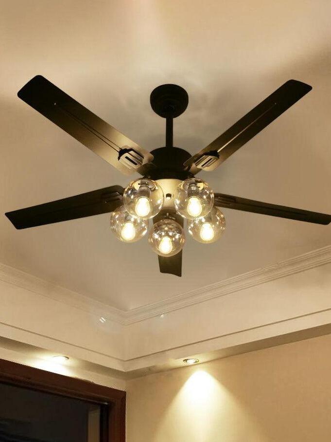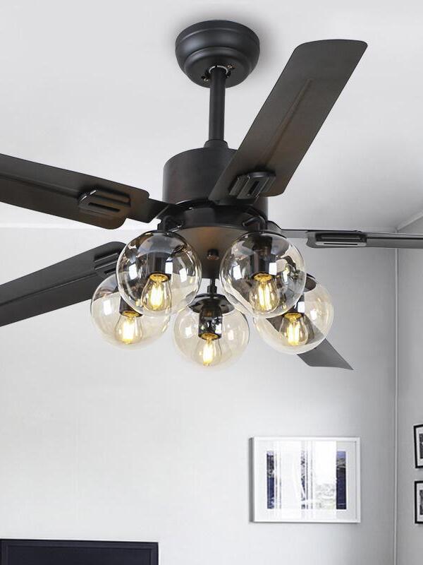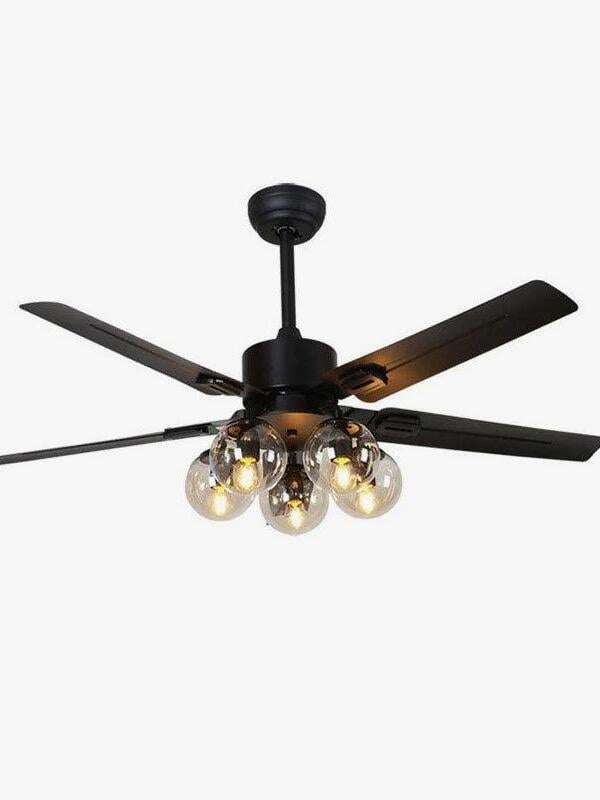 Schwarzer Vintage-Deckenventilator-Kronleuchter mit Glaskugeln