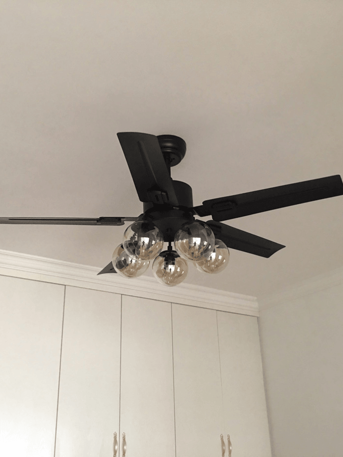 Der Vintage Black Ceiling Fan Glass Ball Chandelier verkörpert zeitlosen Charme mit einem Hauch von Nostalgie. Seine schwarze Oberfläche und die Glaskugelakzente vermitteln ein Gefühl von Vintage-Eleganz. Mit seiner einzigartigen Kombination aus Deckenventilator und Kronleuchter bietet er sowohl Stil als auch Funktionalität und ist somit ideal für Schlafzimmer, Wohnzimmer oder Essbereiche.