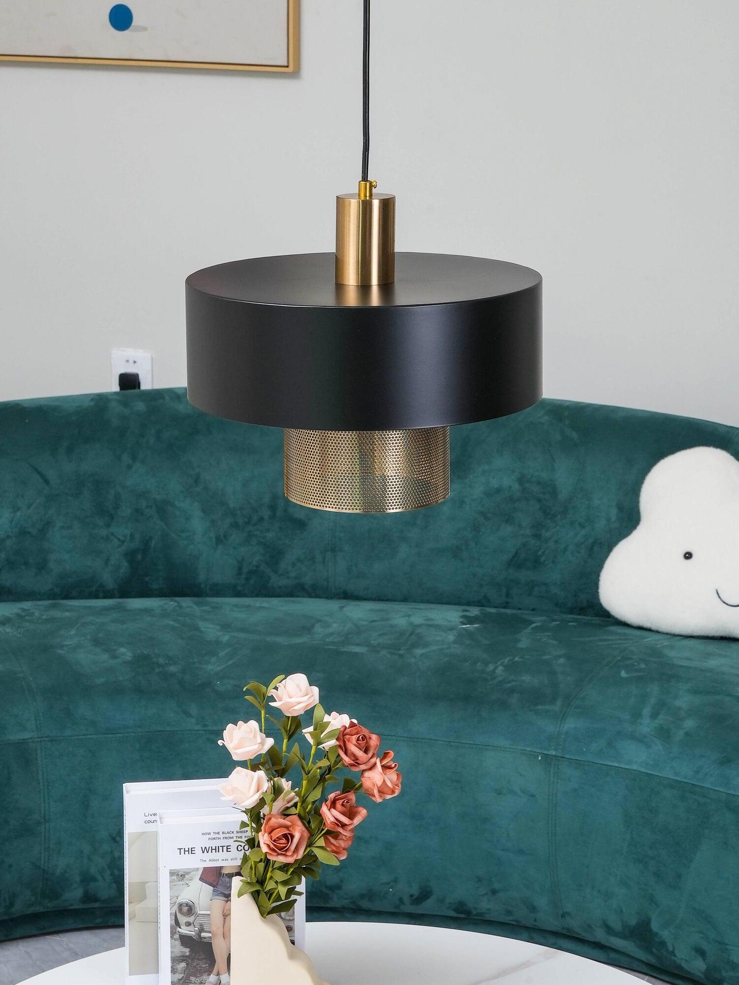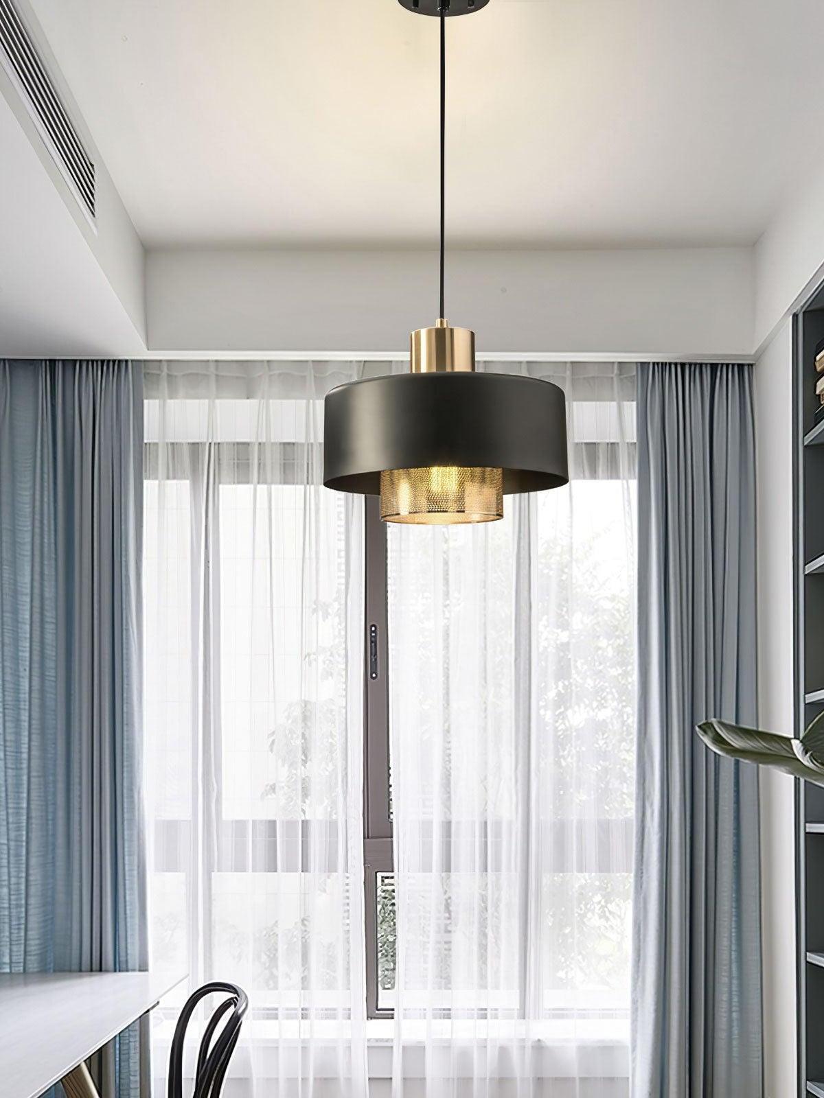 Die Bradbury-Pendelleuchte ist ein markantes Design, das durch kontrastierende Oberflächen und Metalle einen edlen, auffälligen Look erzeugt. Eine 60-Watt-Glühbirne leuchtet wunderschön durch einen perforierten Kupferinnenschirm und erzeugt einen warmen Schein im Raum. Ein verstellbarer Schirm sorgt für gezieltes Licht, wo es benötigt wird.