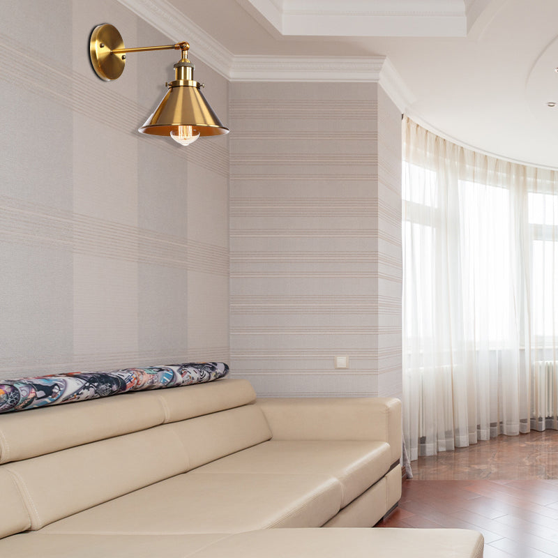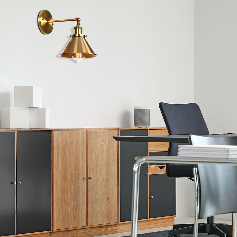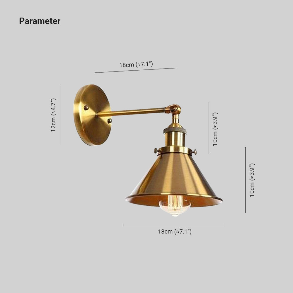 - Drei elegante Farben – Schwarz, Gold und Silber – stehen für den Brady Industrial Vintage Cone Metal Hanging Wall Lamp Schirm zur Verfügung. Diese edlen Farbtöne dienen als leere Leinwand für Ihre Innenarchitekturträume und verbessern subtil die Atmosphäre Ihres Raumes. Diese Farbwahl soll Ihren Raum mit einem Hauch von Raffinesse bereichern, egal ob Sie die starke Aussage von Schwarz, den Luxus von Gold oder die Modernität von Silber bevorzugen.