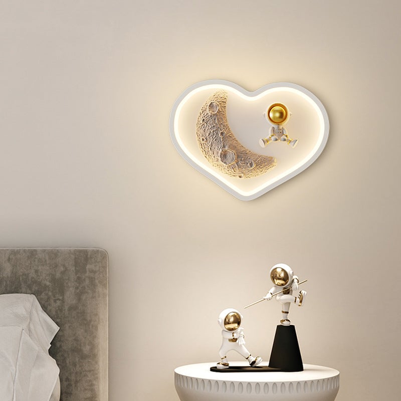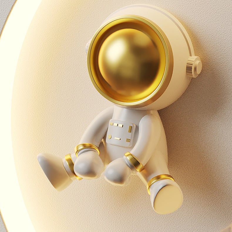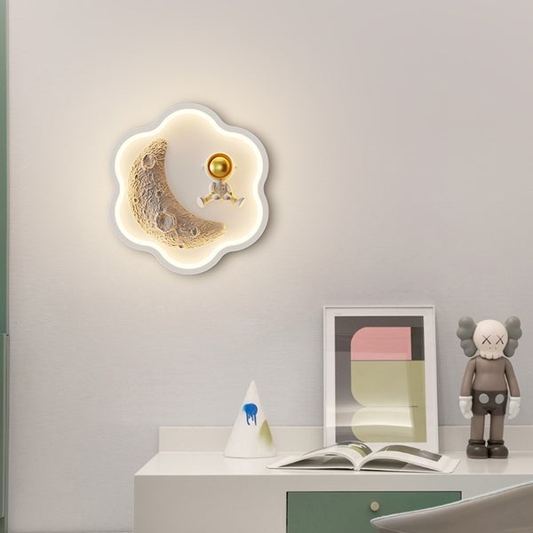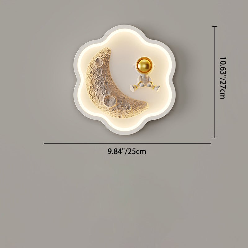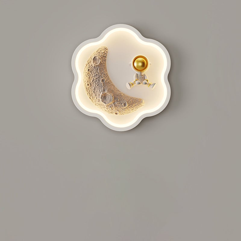 Zeitgenössische kreative blumenförmige Harz-Mond-Astronauten-LED-Wandleuchte für das Wohnzimmer