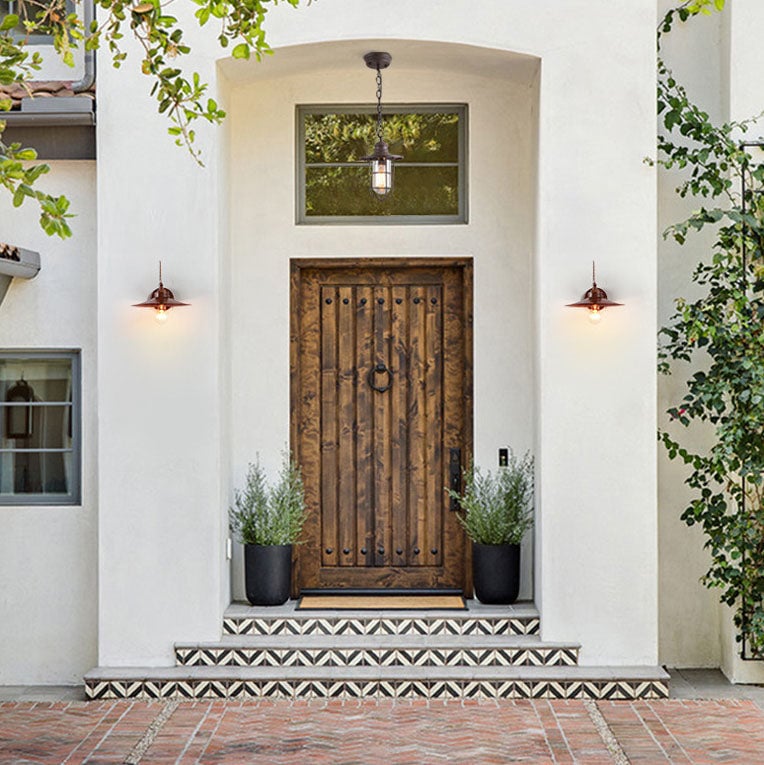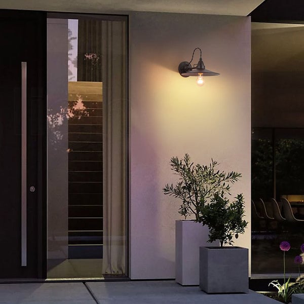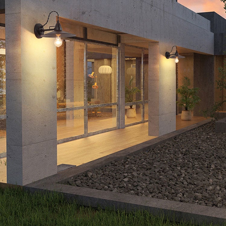 Zeitgenössische industrielle wasserdichte Metallplattenschüssel-Wandleuchte mit 1 Licht für die Außenterrasse