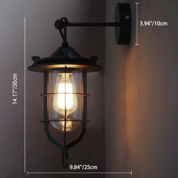 Zeitgenössische industrielle Wandleuchte aus Eisen und Glas, rund, 1 Licht, für das Esszimmer
