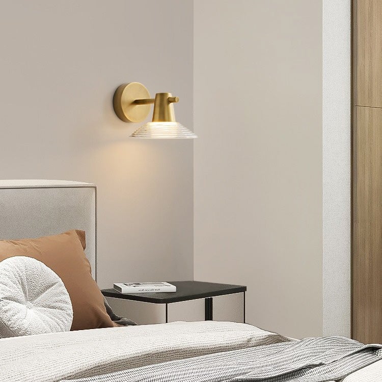 Zeitgenössische nordische konische LED-Wandleuchte aus Vollkupfer-Acryl für das Wohnzimmer
