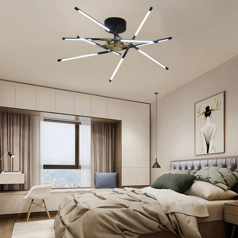 - Mit der unregelmäßigen Form des Lichtkreuzbalkens dieser Pendelleuchte. Ihr einzigartiges Design erlaubt es Ihnen, die Form nach Herzenslust anzupassen und zu konfigurieren. Schaffen Sie einen fesselnden Blickfang in Ihrem Wohnraum, indem Sie die Balken in eine Form anordnen, die mit Ihrem persönlichen Stil harmoniert.