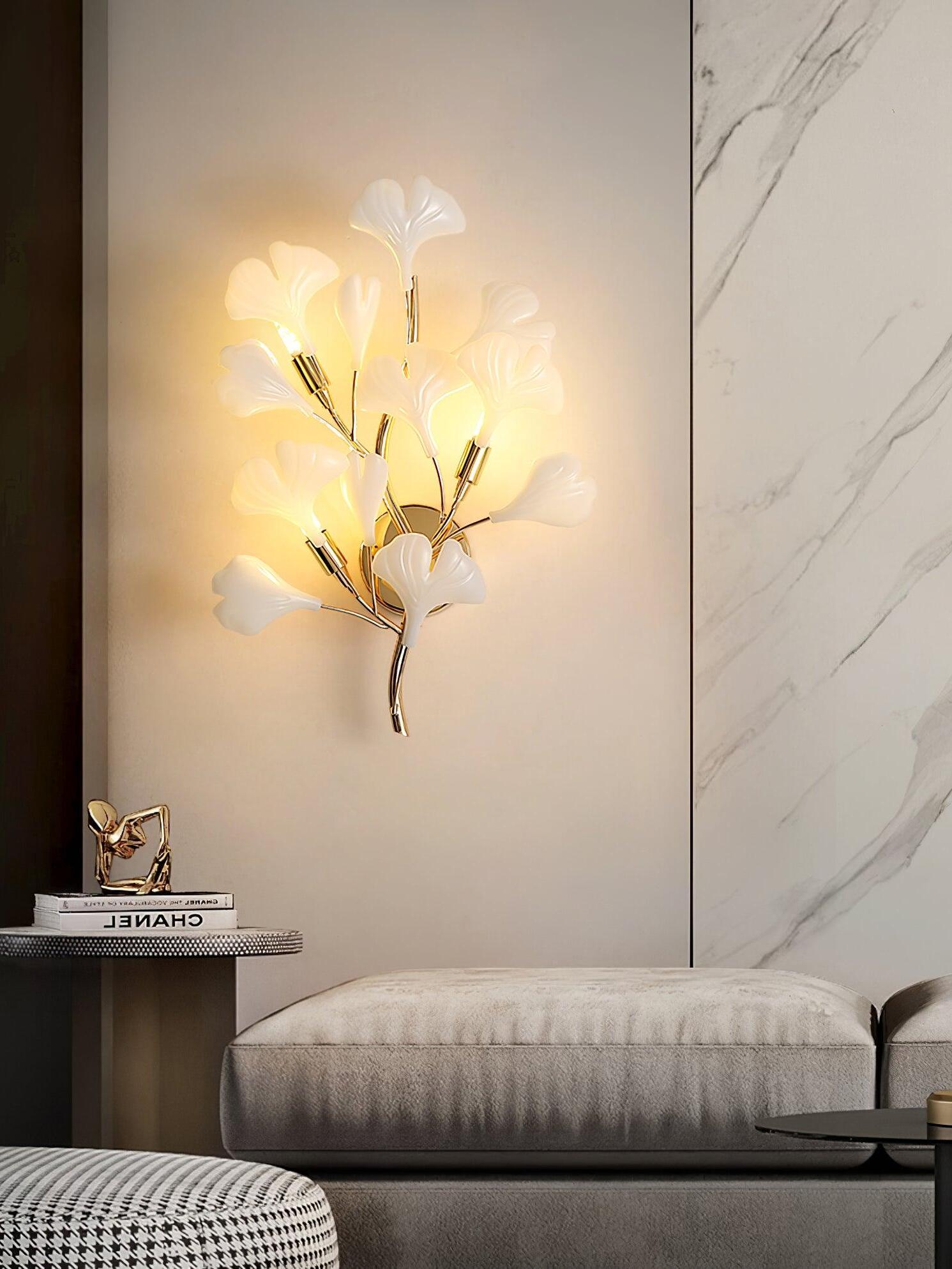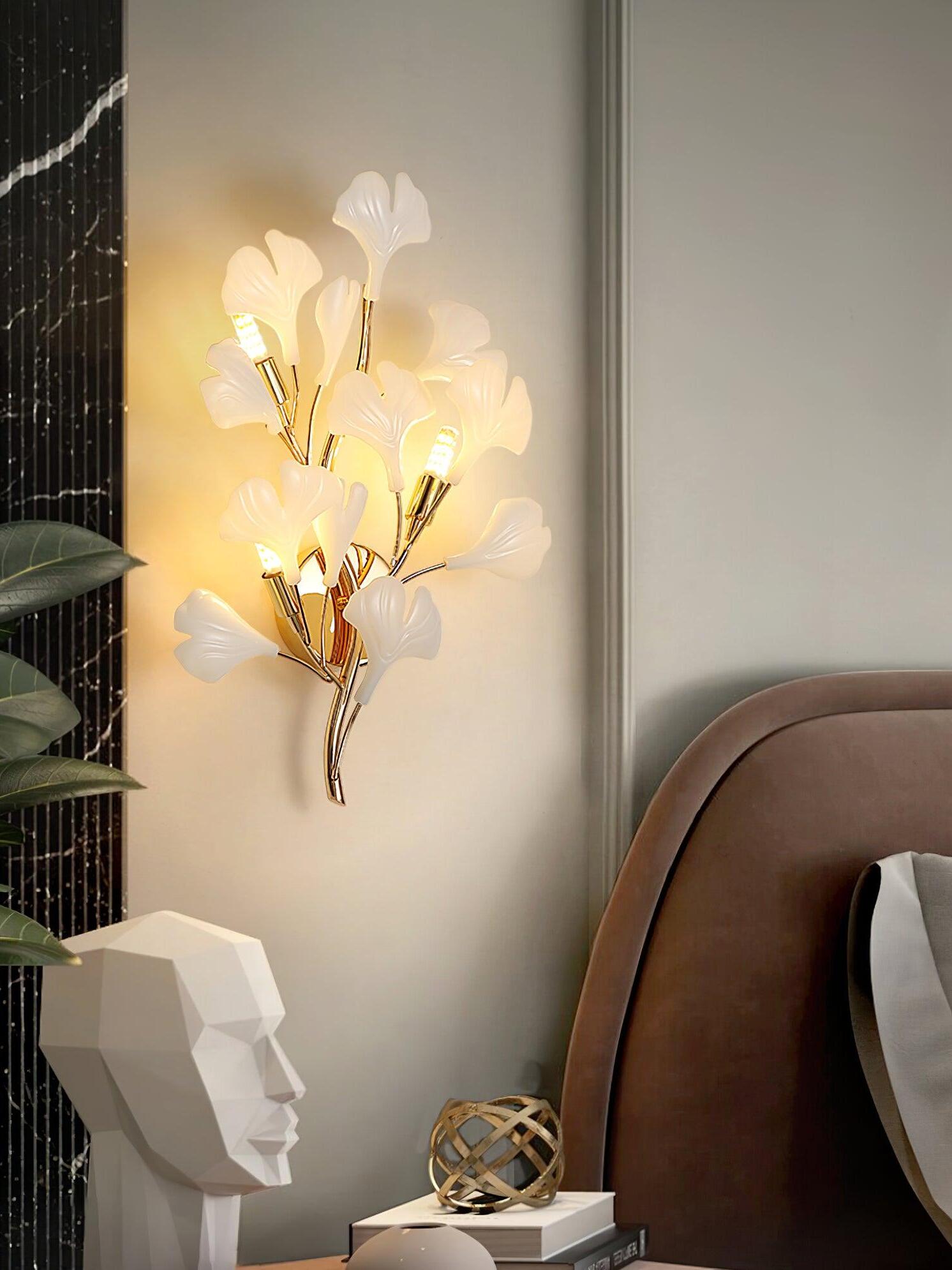 Die Classic Ceramics Flower Gingko Wandlampe ist ein zeitloses Meisterwerk, das klassische Eleganz mit botanischer Inspiration verbindet. Diese Wandlampe zeigt exquisite Keramikhandwerkskunst mit fein geformten Gingkoblättern und exquisiten Blumenmotiven. Ihre komplizierten Details und ihr raffiniertes Design verleihen jedem Raum einen Hauch von Raffinesse, sei es ein gemütliches Wohnzimmer oder ein exquisiter Flur.