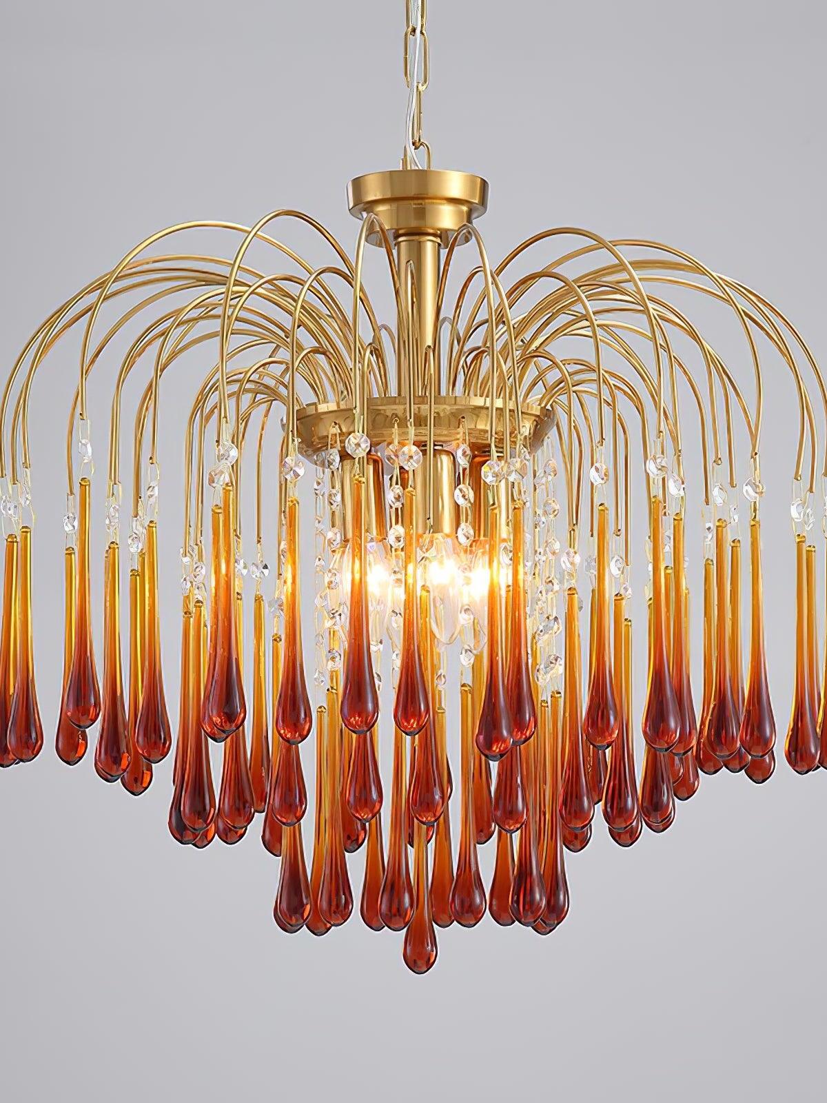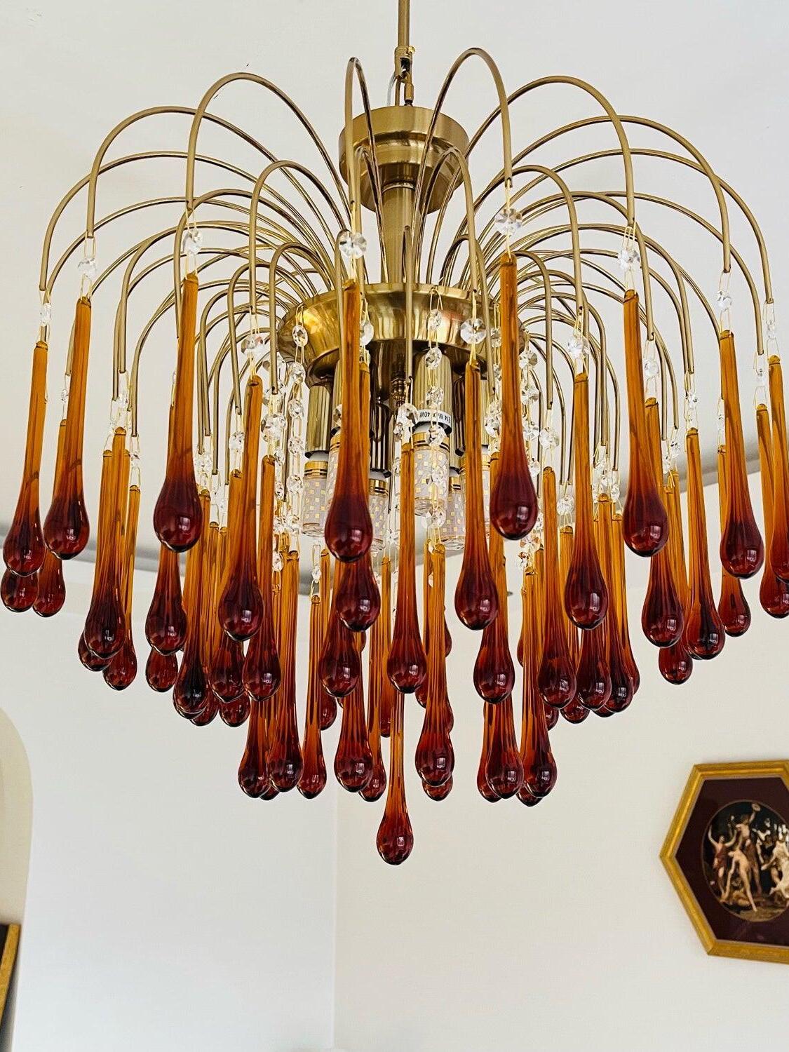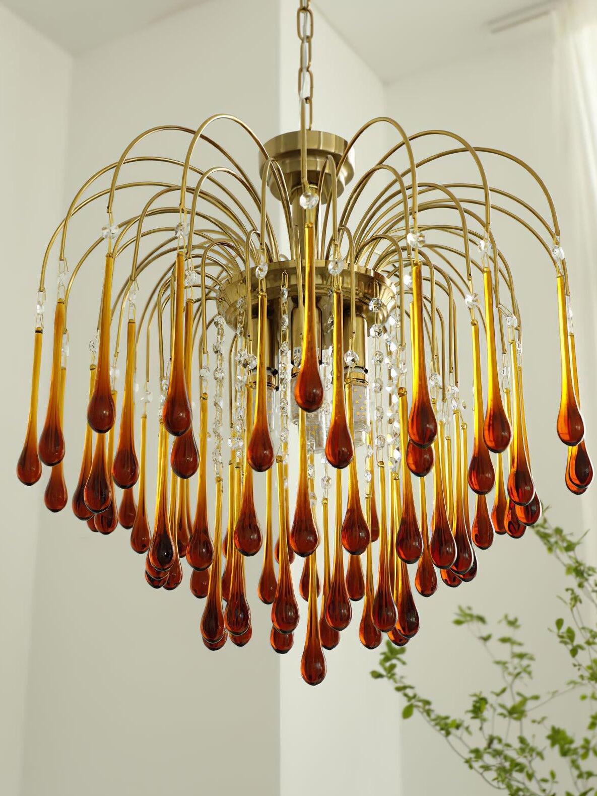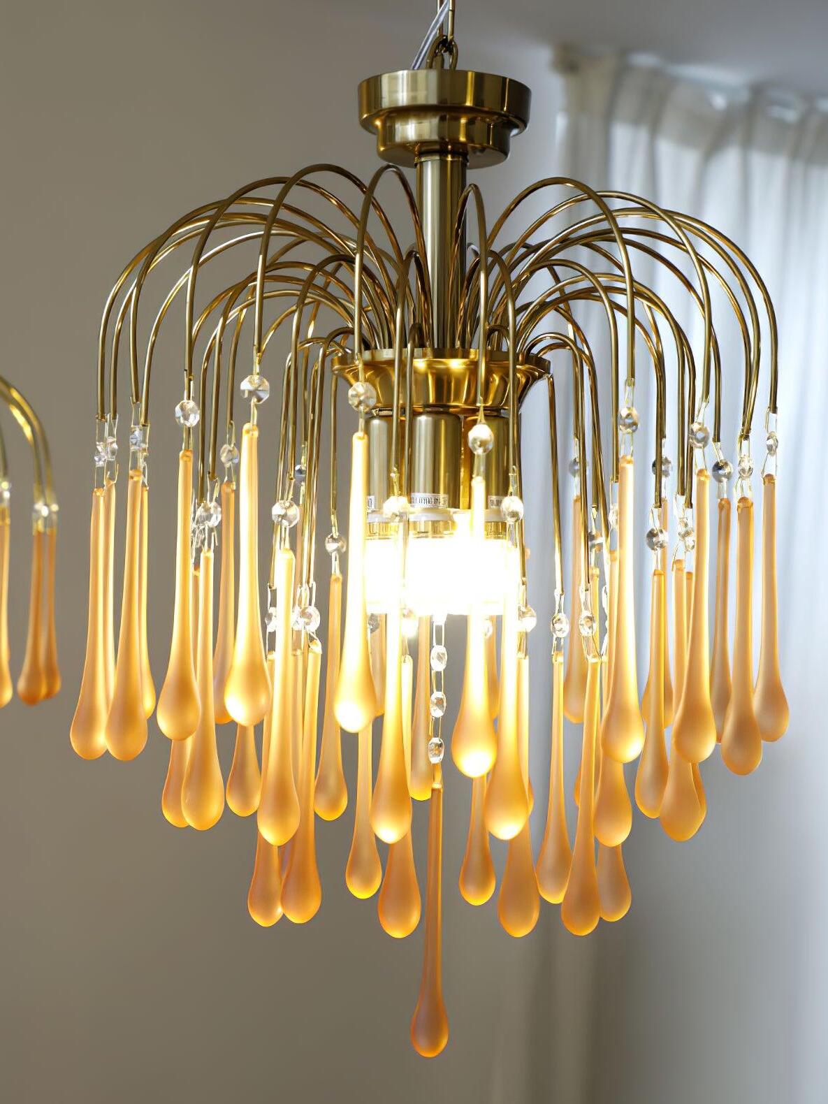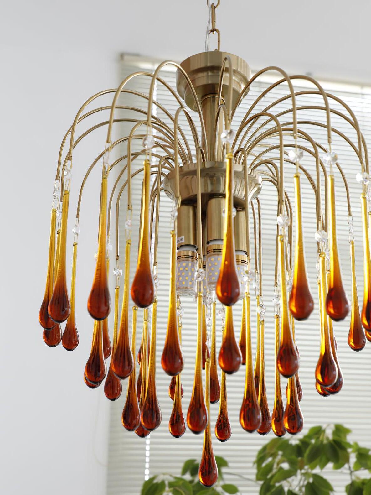 Kronleuchter mit mehrköpfigem Stempel aus maltosefarbenem Kristall