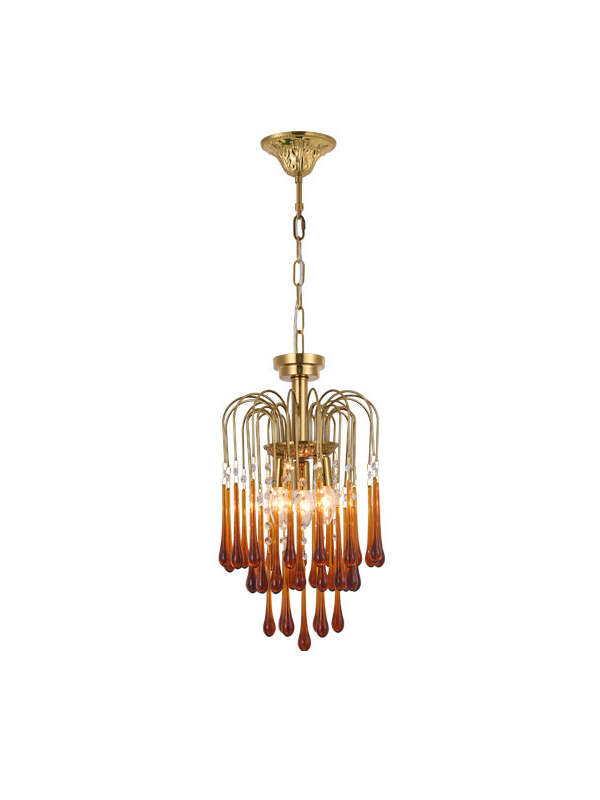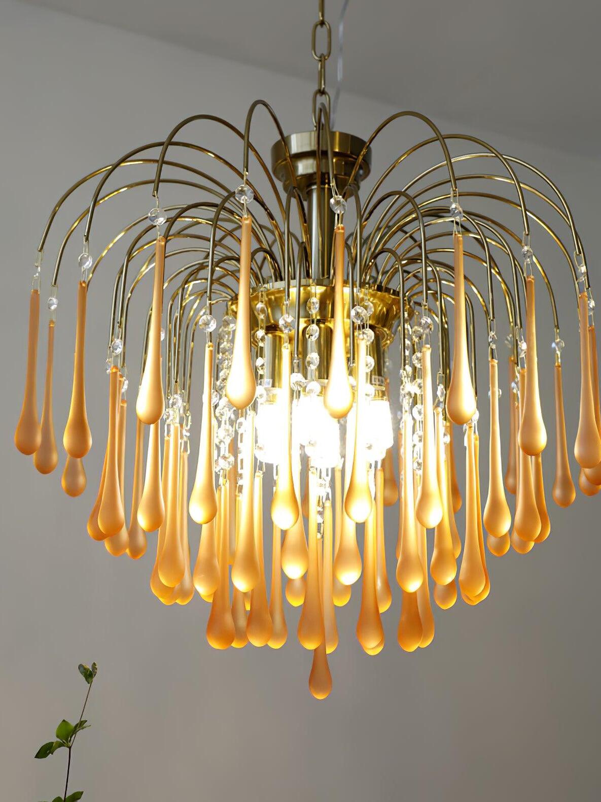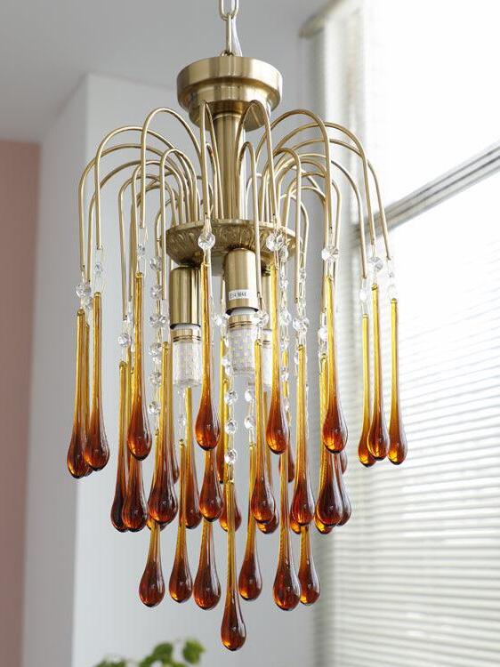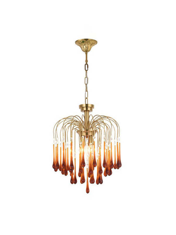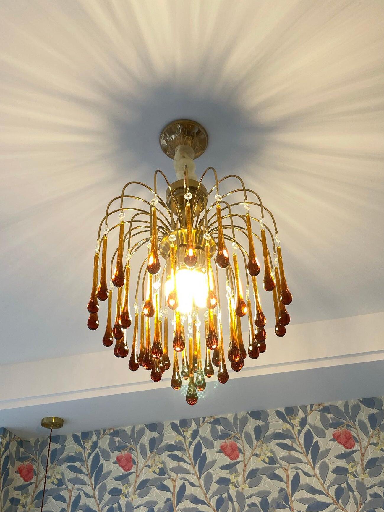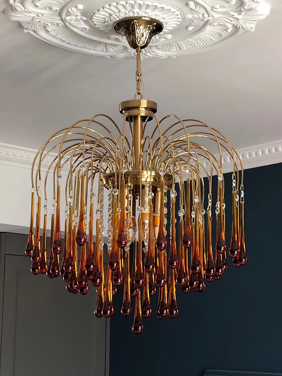 Kronleuchter mit mehrköpfigem Stempel aus maltosefarbenem Kristall