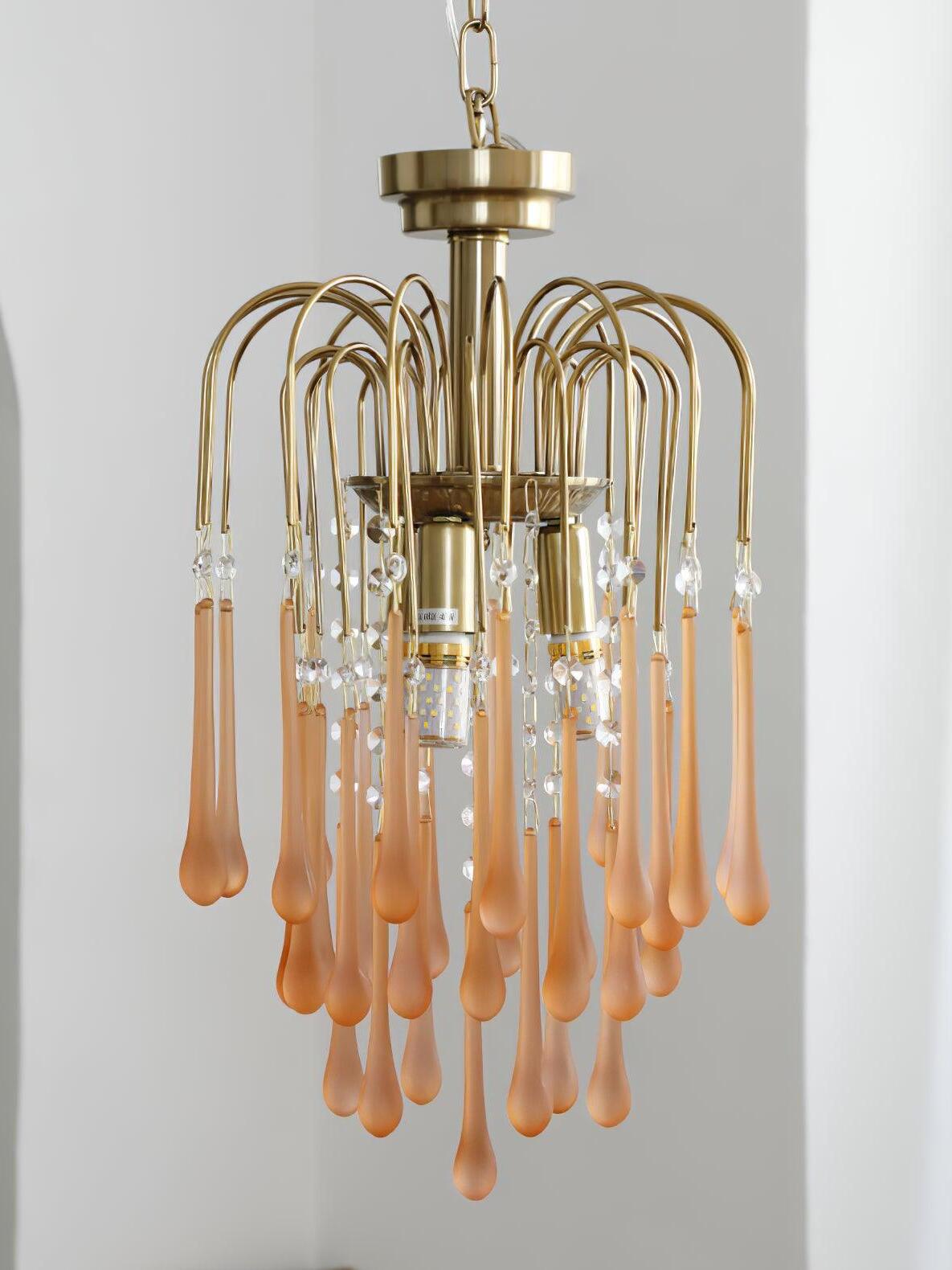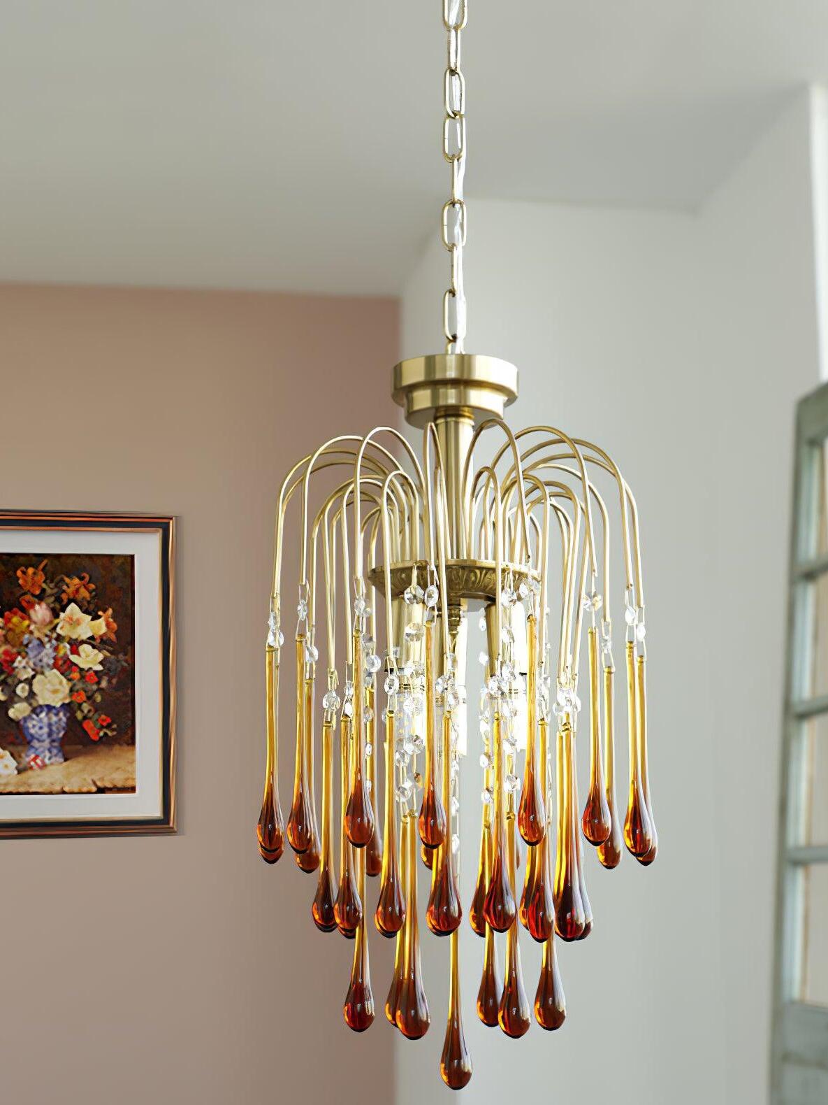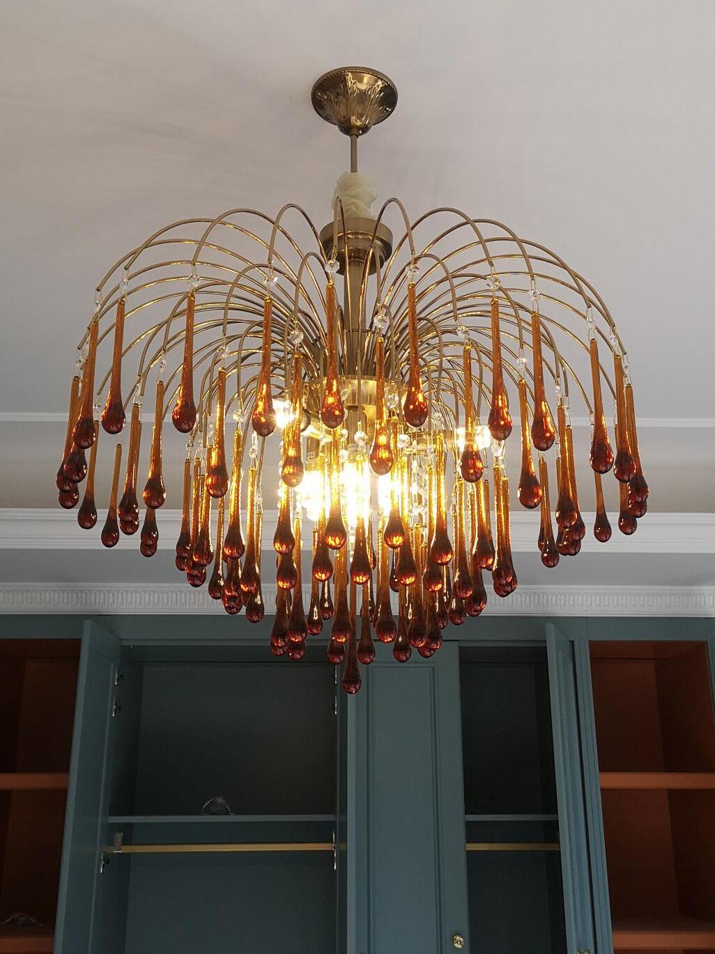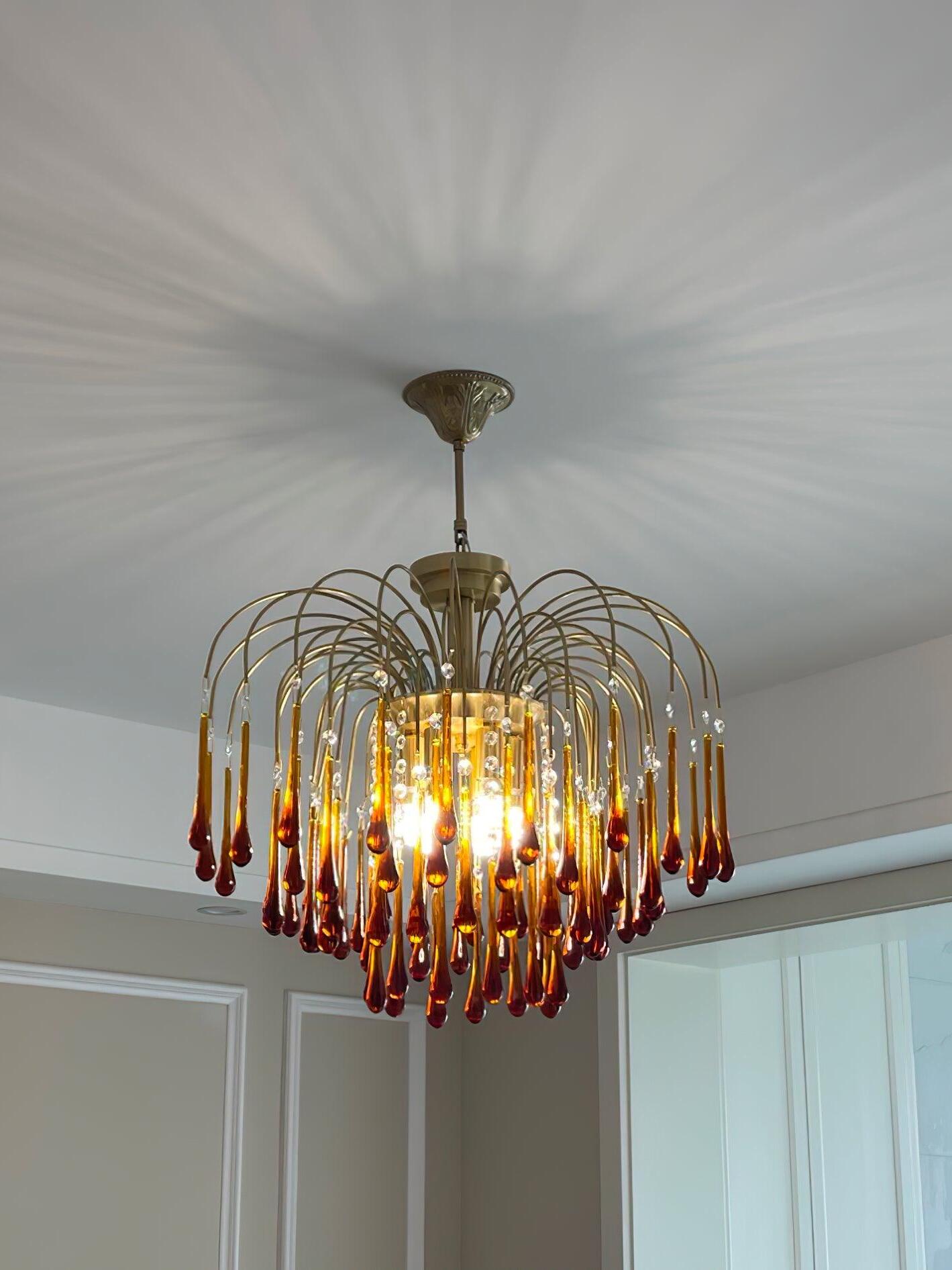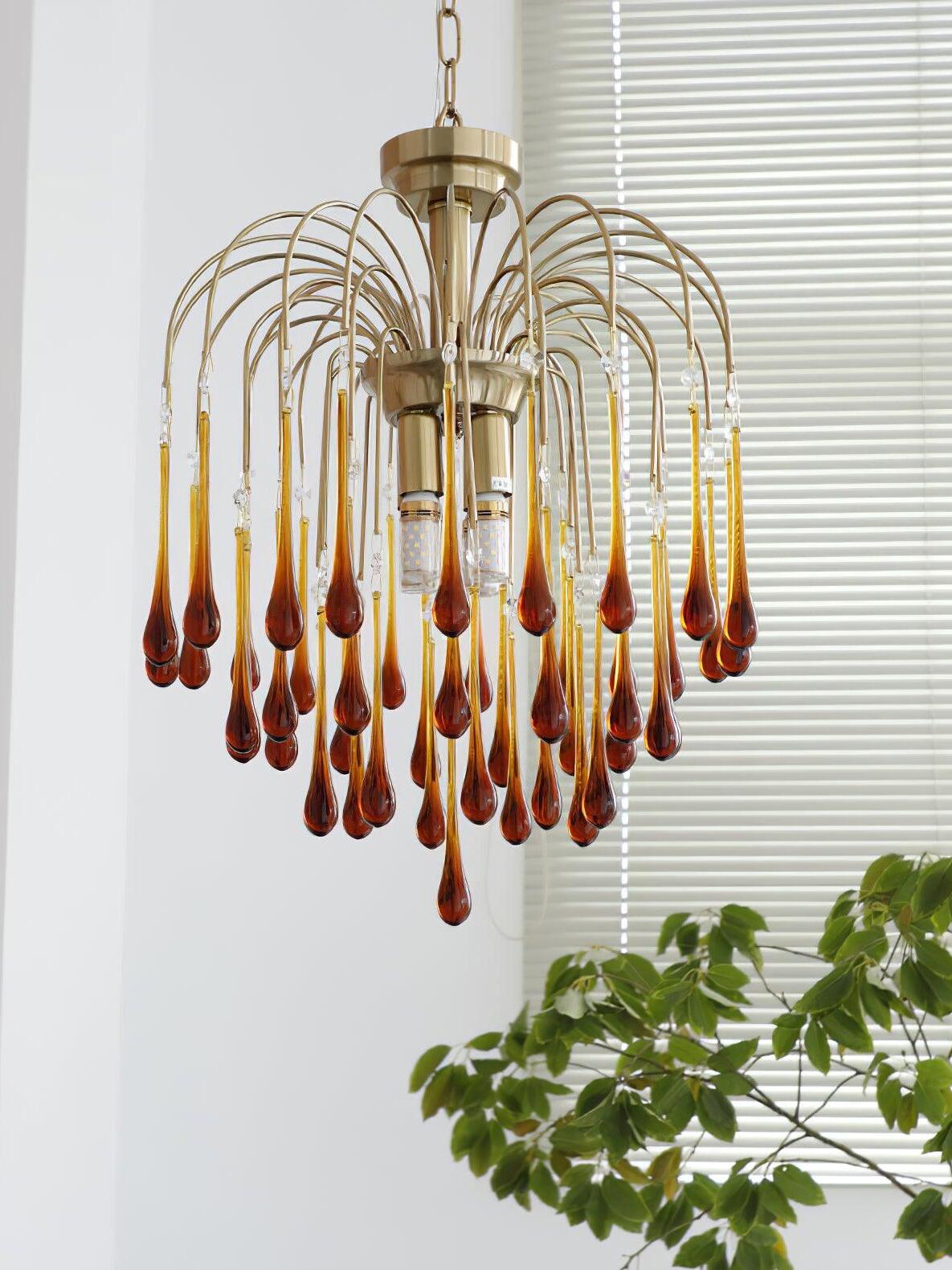 Kronleuchter mit mehrköpfigem Stempel aus maltosefarbenem Kristall