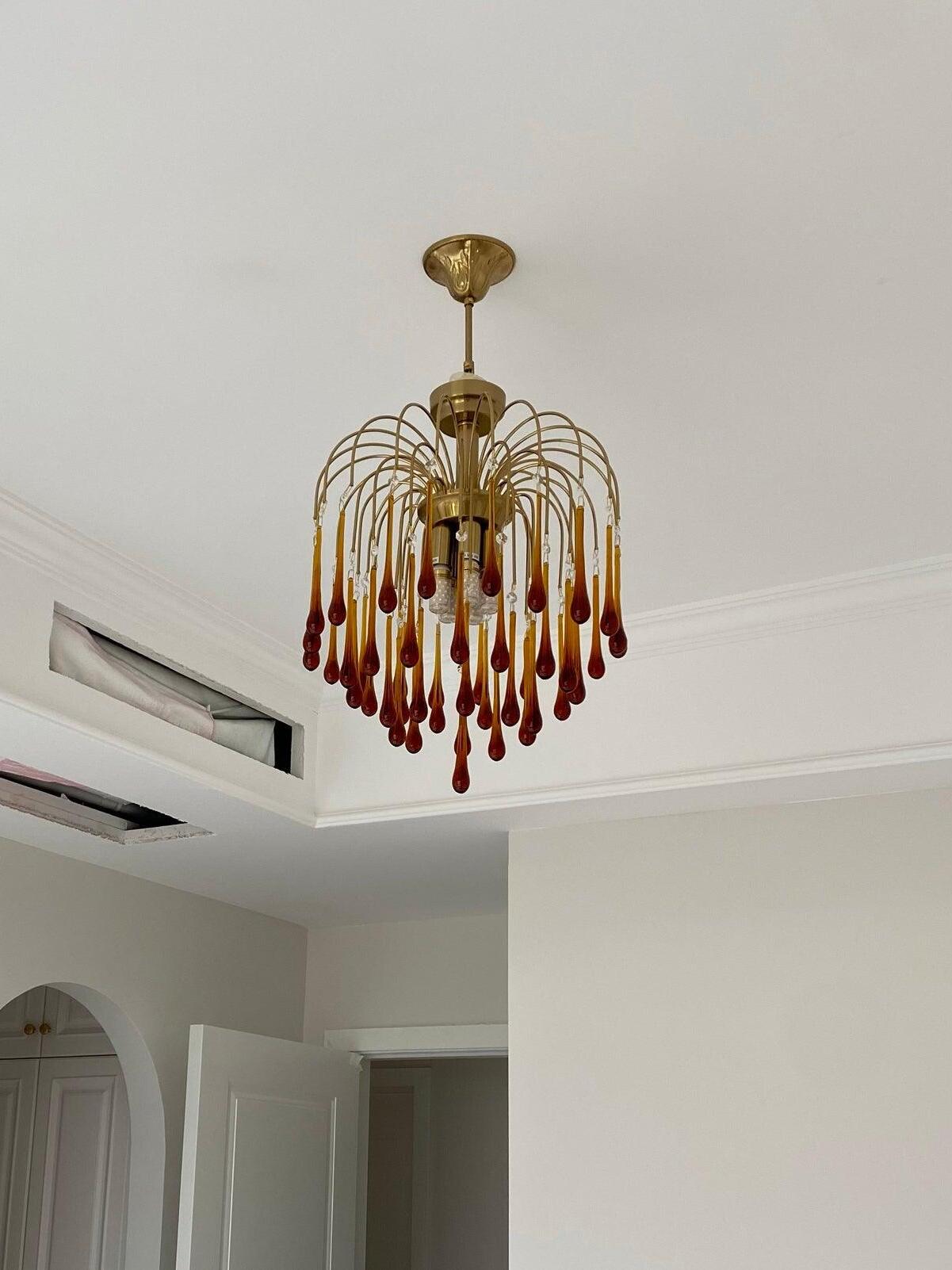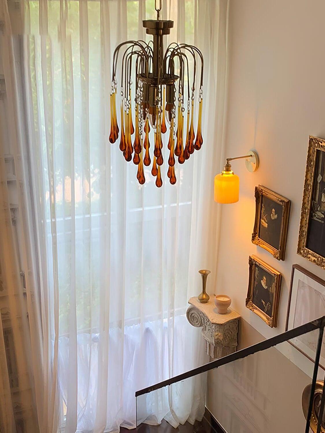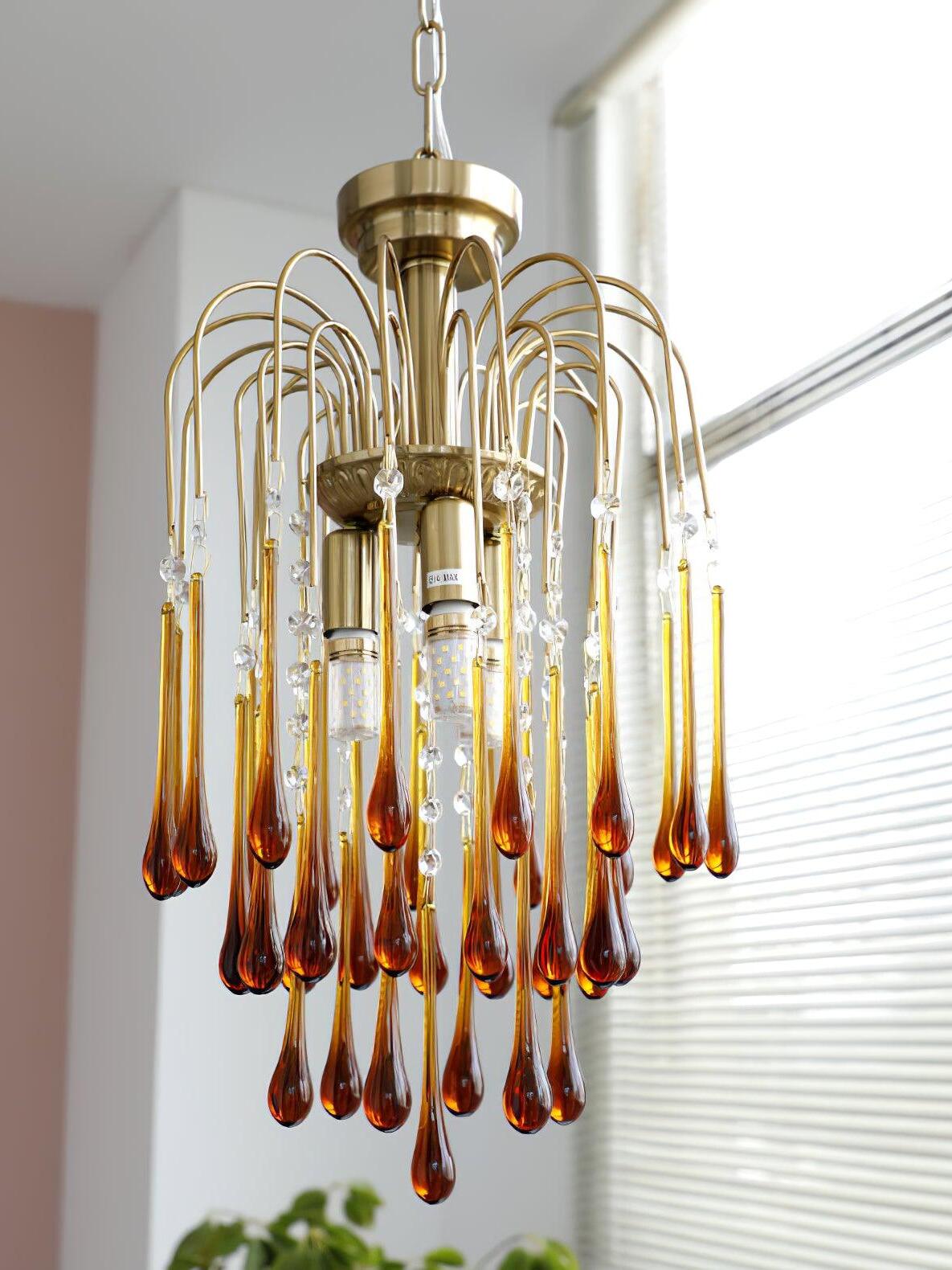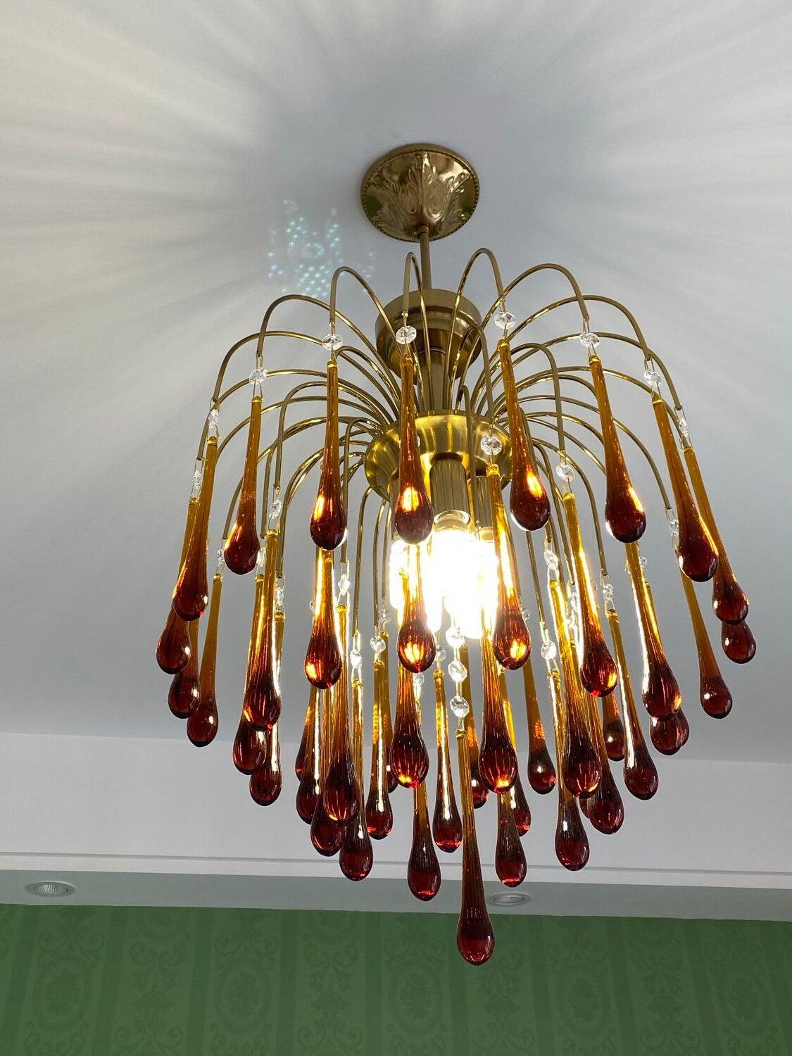 Kronleuchter mit mehrköpfigem Stempel aus maltosefarbenem Kristall