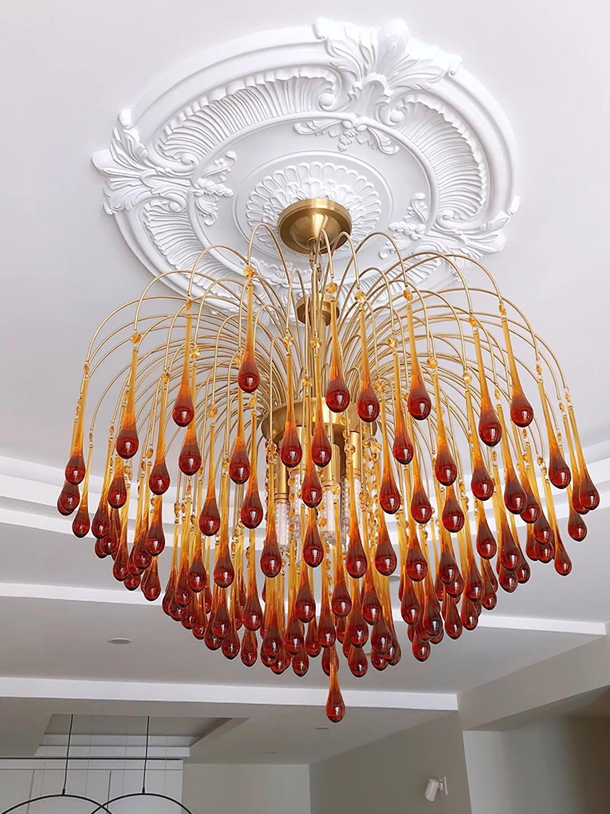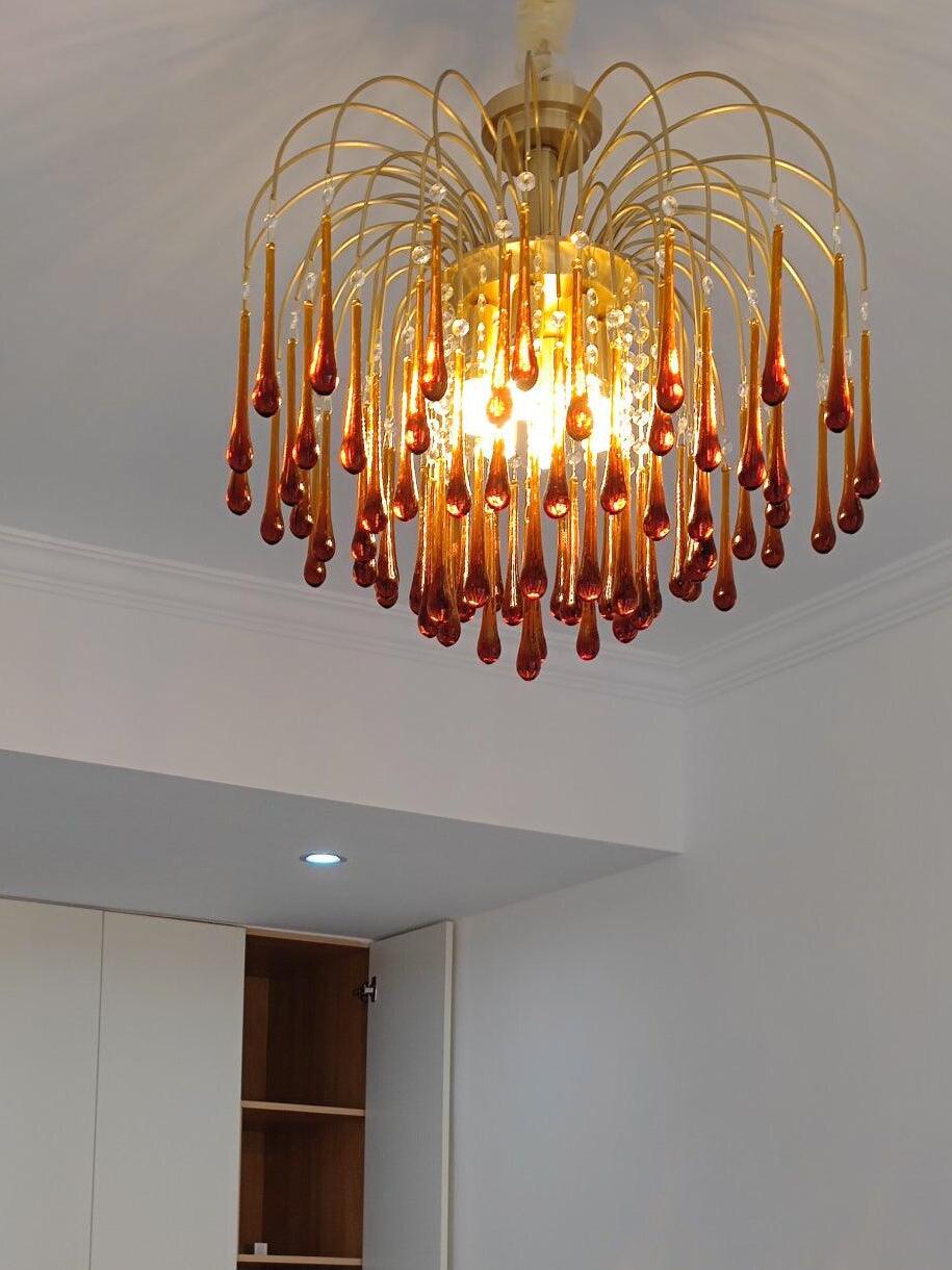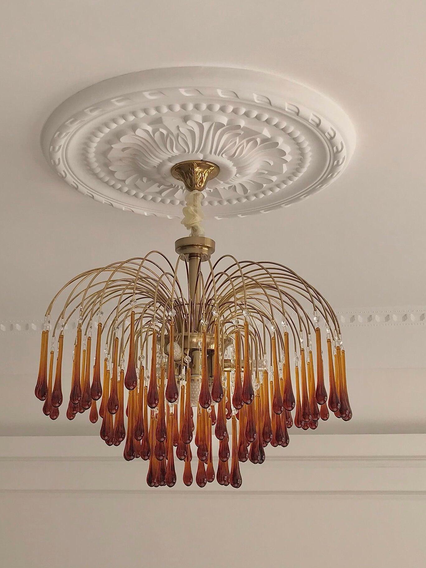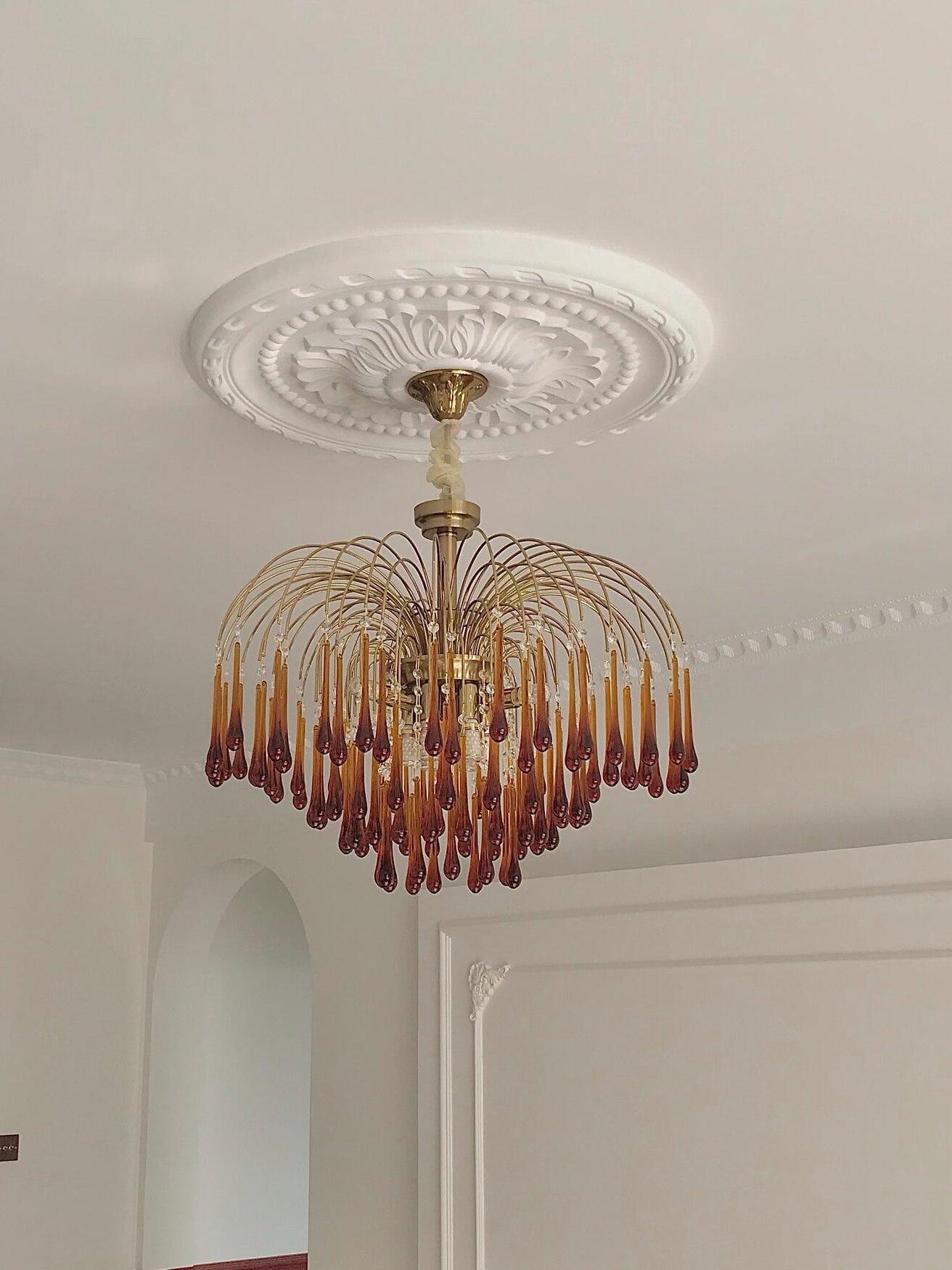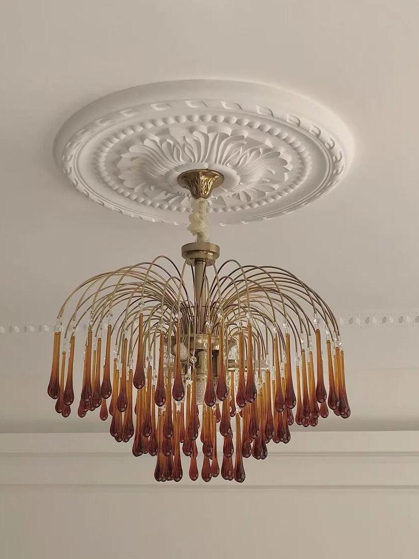 Kronleuchter mit mehrköpfigem Stempel aus maltosefarbenem Kristall