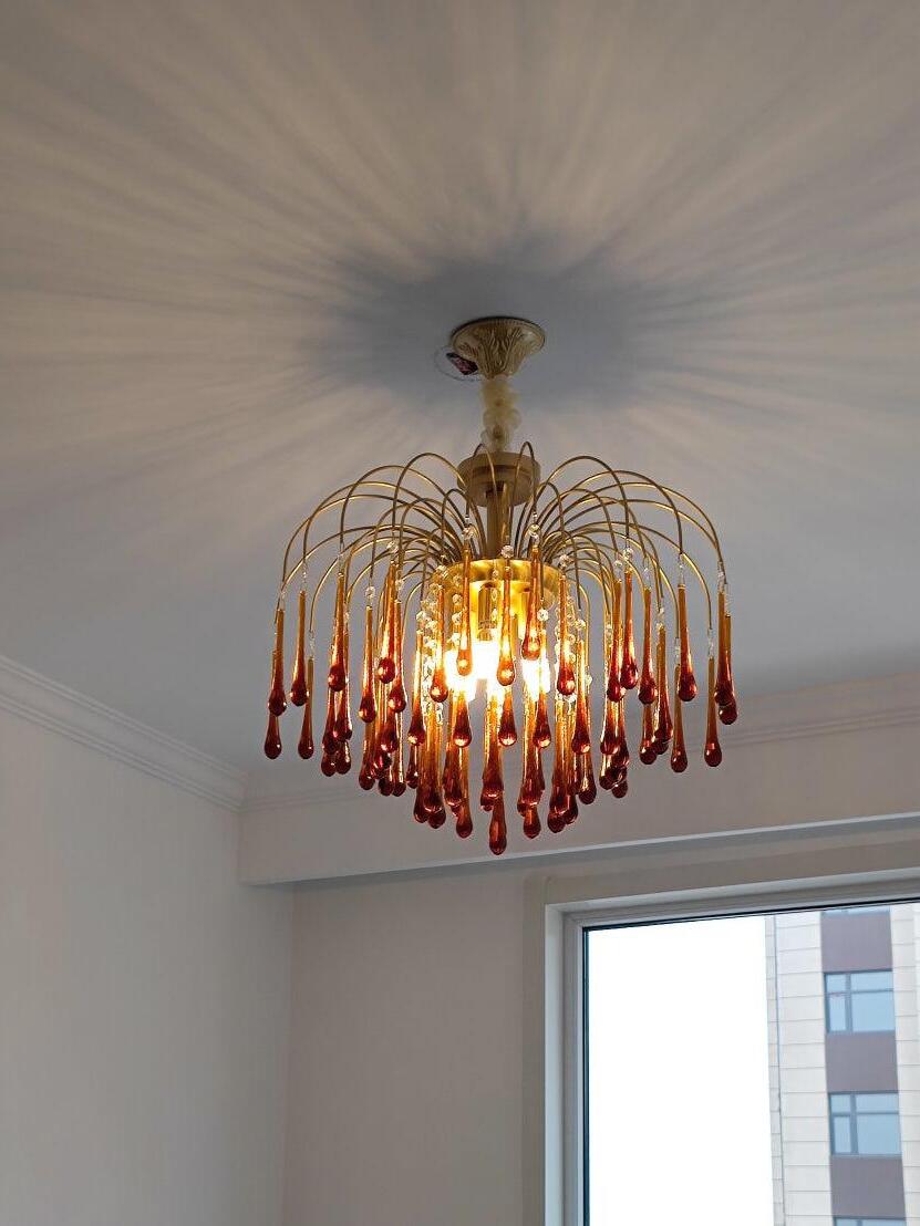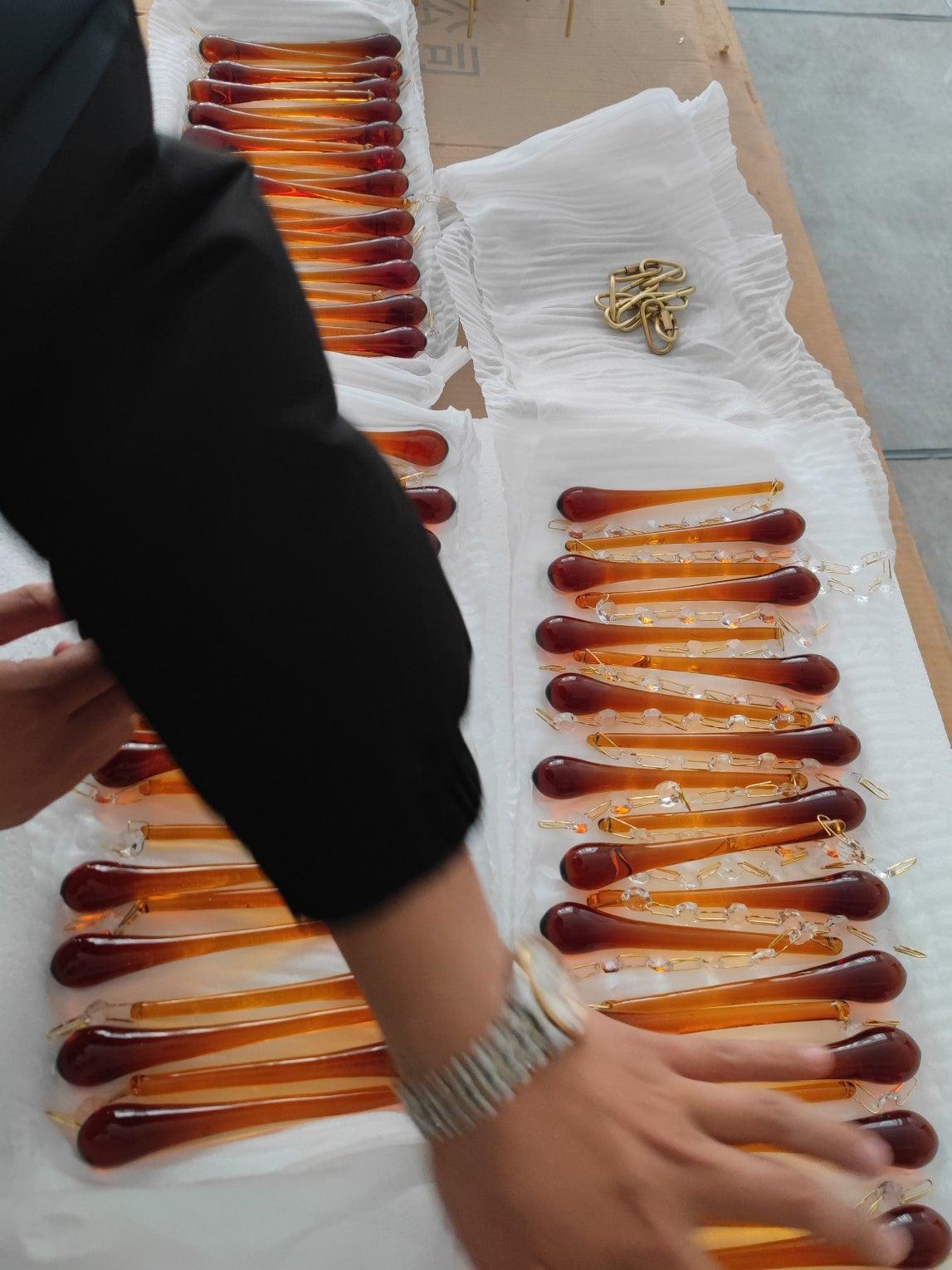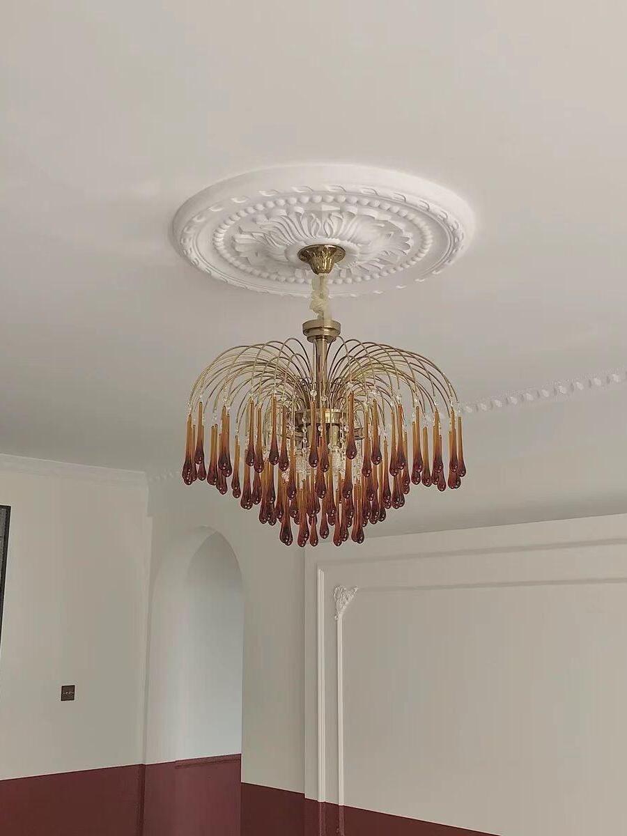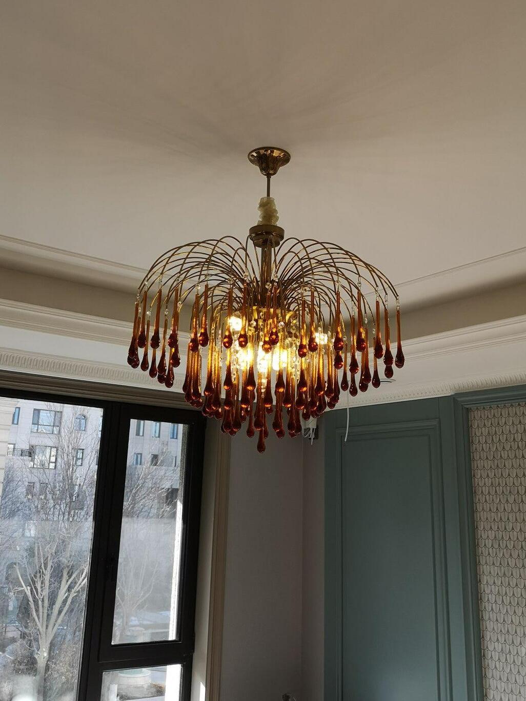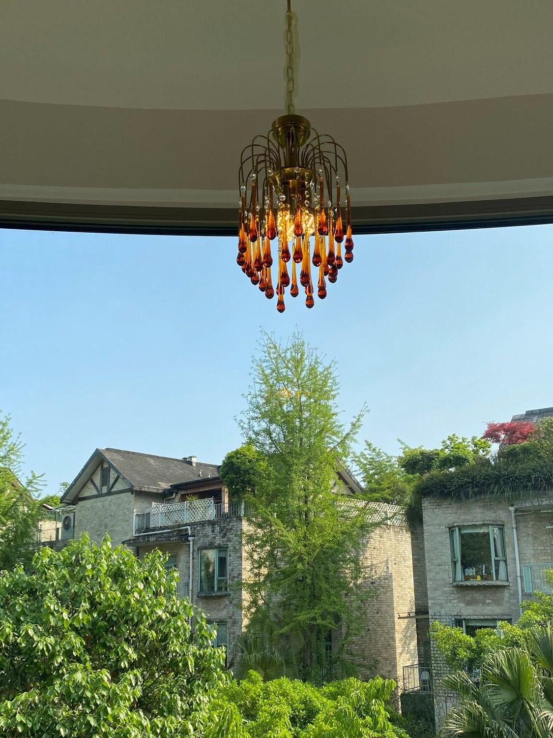 Kronleuchter mit mehrköpfigem Stempel aus maltosefarbenem Kristall