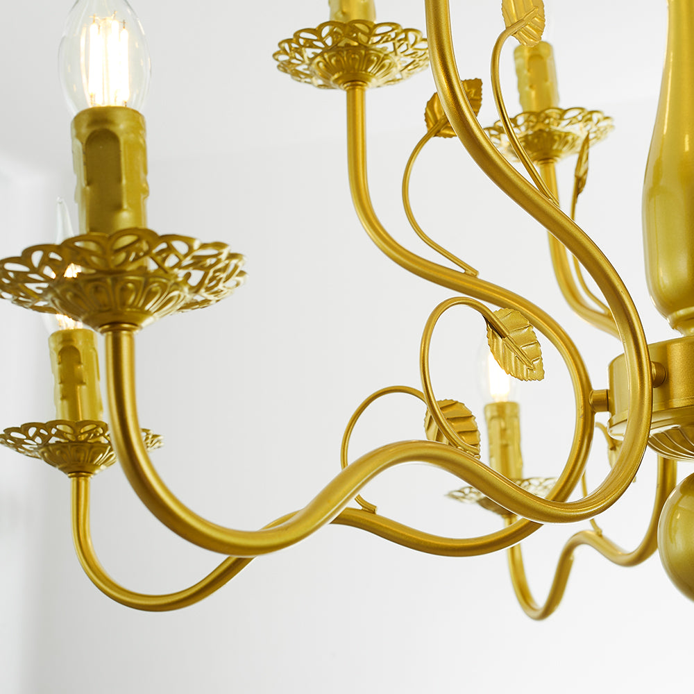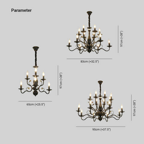 - Der antike Kronleuchter hat drei Lichter (6/12/16) und zwei Farben (Schwarz und Gold) zur Auswahl.