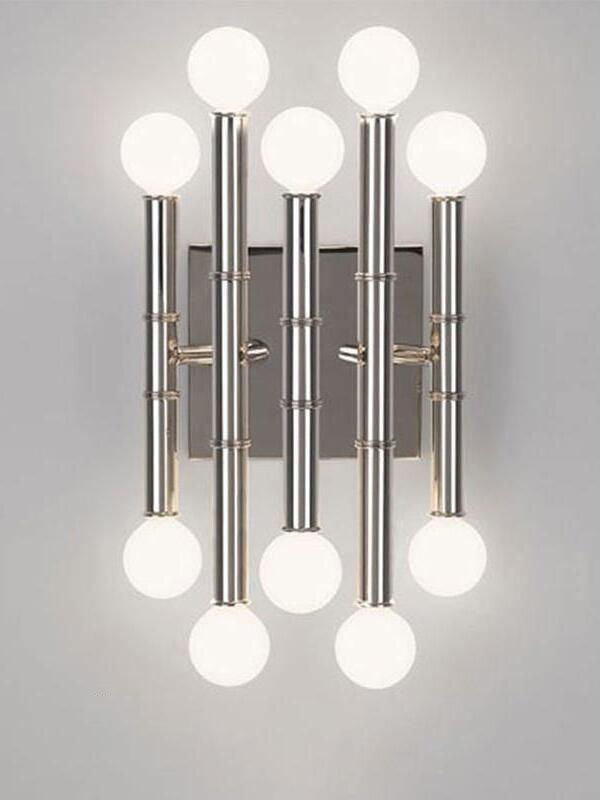 Unsere moderne Interpretation des klassischen Bambus. Unsere Interpretation der traditionellen, ikonischen Welt des Bambus verleiht einem Loft einen Hauch von mondänem Glamour oder einer Park Avenue-Wohnung Modernität. Die Meurice-Wandlampe verleiht einem schmalen Flur oder über einem Esstisch skulpturalen Glanz.