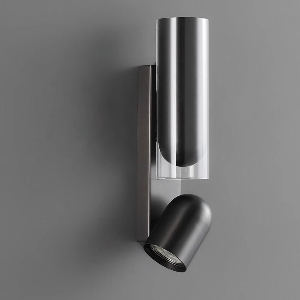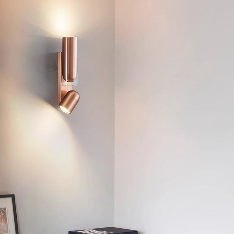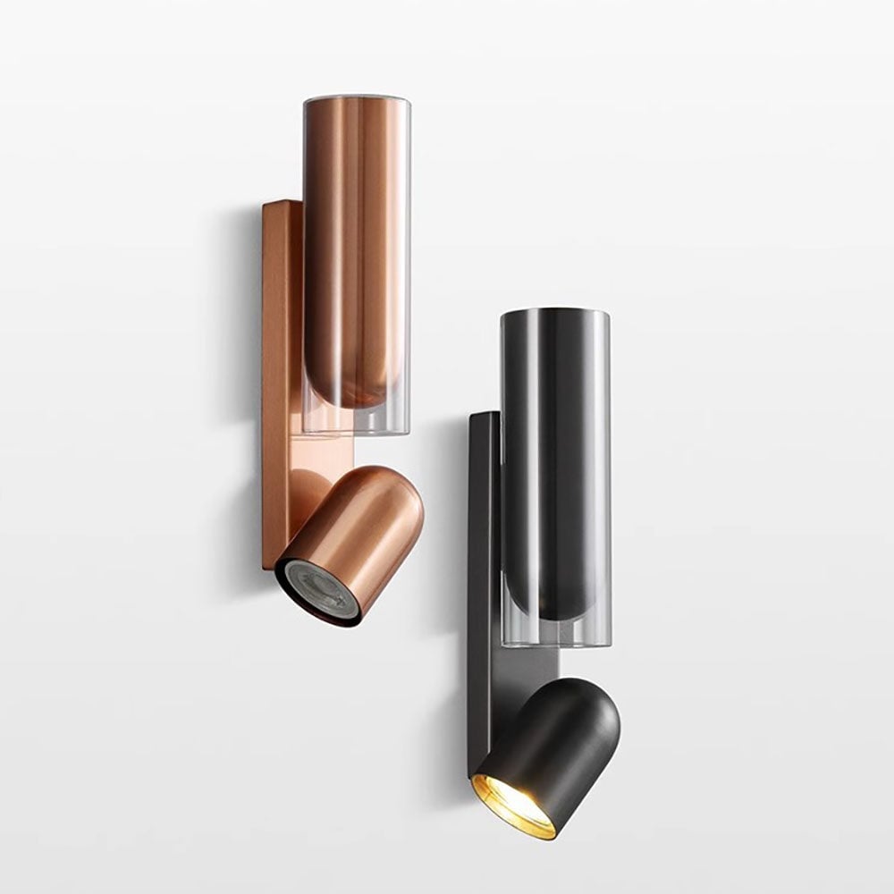 Moderne minimalistische drehbare Zylinder-Metallglas-Wandleuchte mit 2 Lichtern für Schlafzimmer
