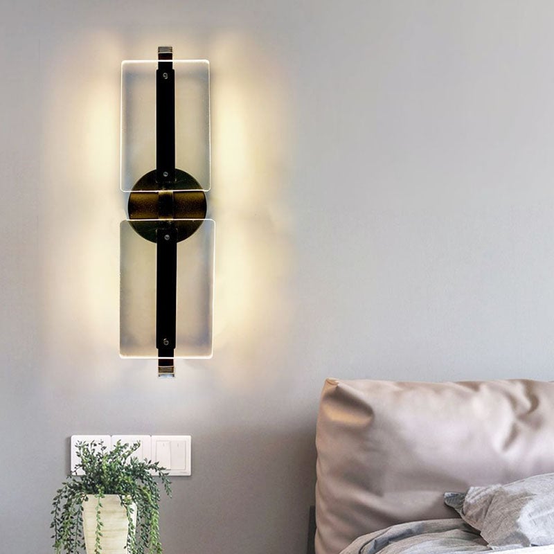 Moderne, schlichte, rechteckige LED-Wandleuchte aus Acryl für das Wohnzimmer