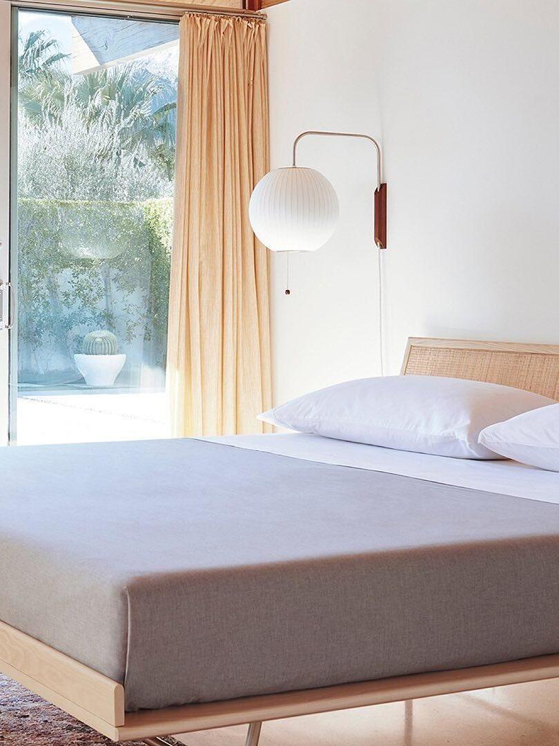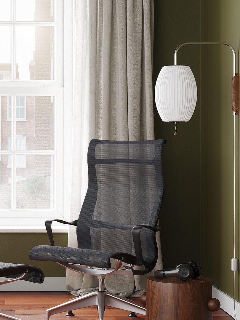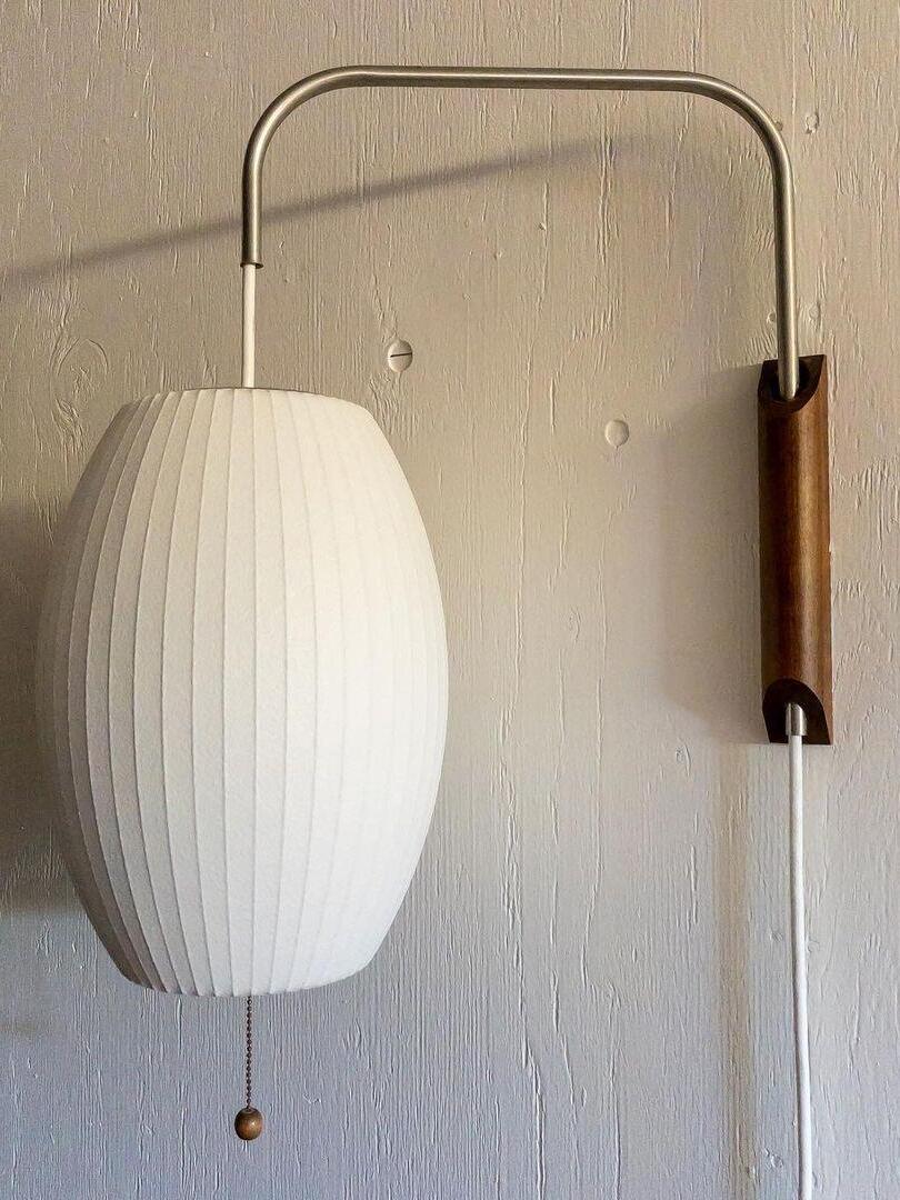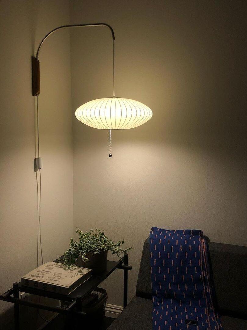 Variationen einer im Wesentlichen sphärischen Form, die Bubble Lamp-Serie ist ein distinguiertes und zeitloses Design. Die Nelson Ball Wandleuchte ist mit einem schwenkbaren Scharnier und einem verstellbaren Stecker-Kabel ausgestattet, das eine einfache Bewegung des Lampenschirms ermöglicht, ohne ihn an der Wand neu justieren zu müssen. Ihr hoher Preis hinderte ihn daran, eine zu kaufen, inspirierte ihn jedoch auch dazu, seine eigene zu entwerfen. Das Ergebnis war eine Serie von Lampen mit elementaren, sphärischen Formen wie einem runden Apfel, einer länglichen Zigarre und einer wohlgeformten Birne, unter anderem.