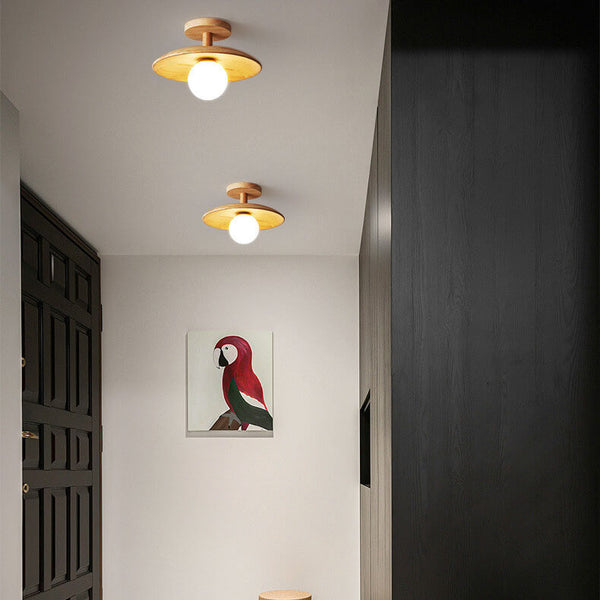 Nordic Creative Holzkuppel-Deckenleuchte mit 1 Licht, halbbündiger Montage