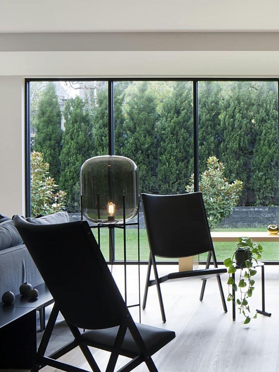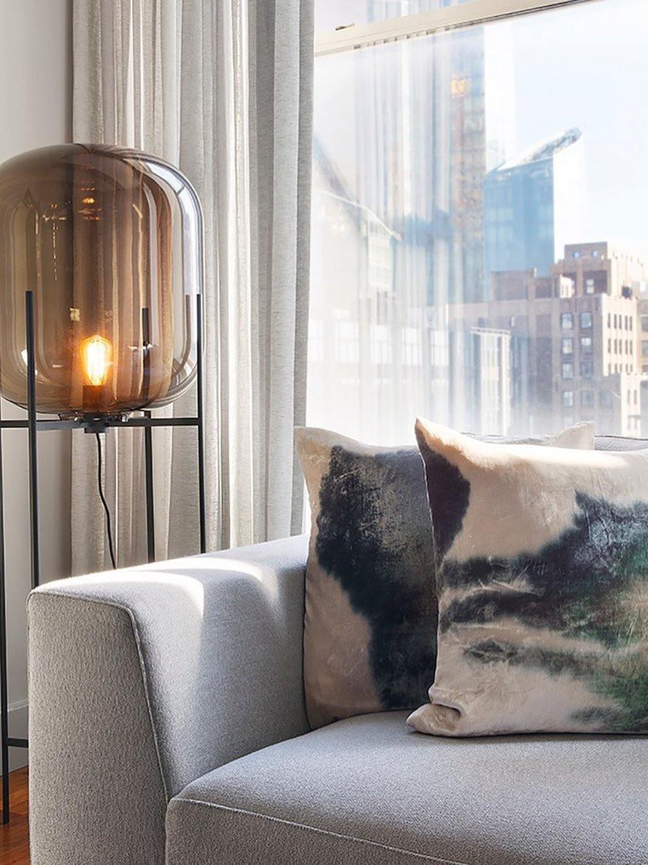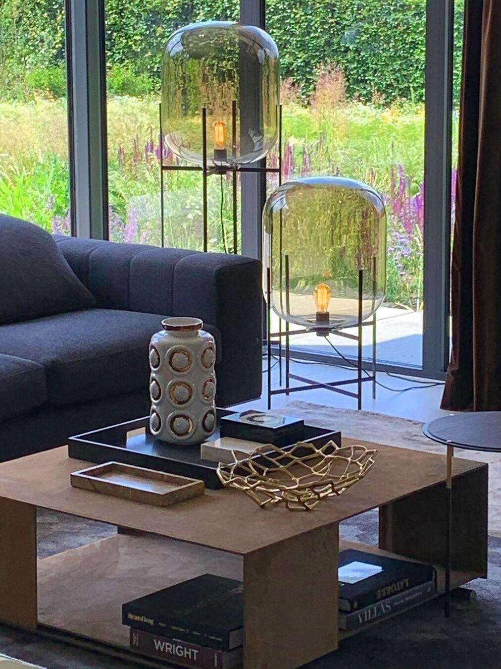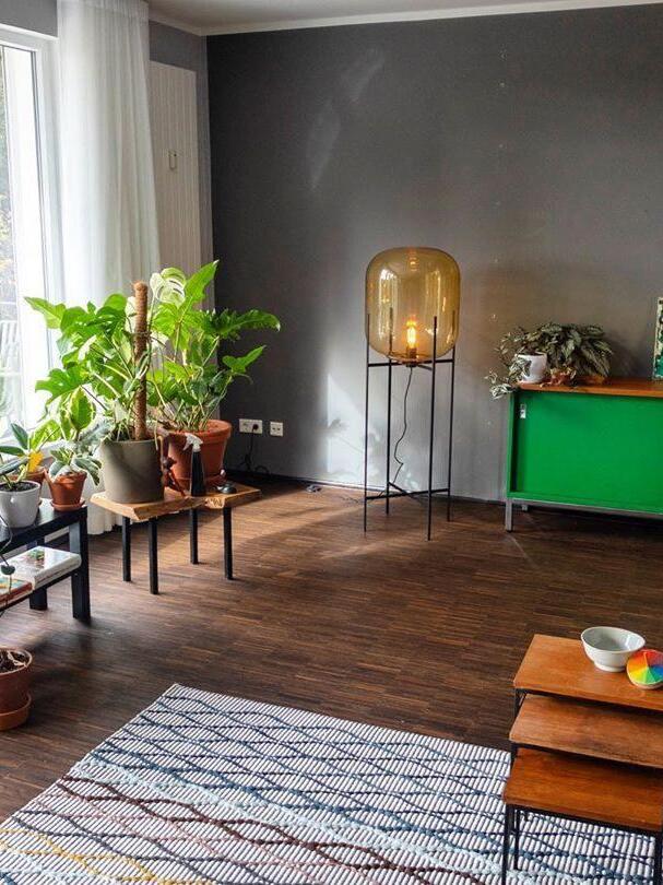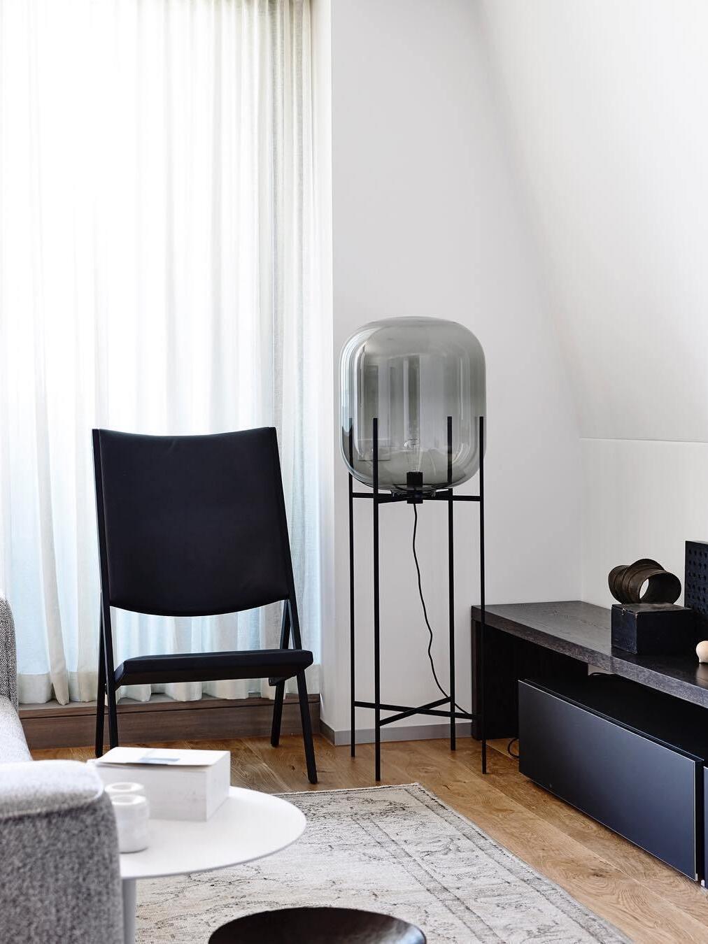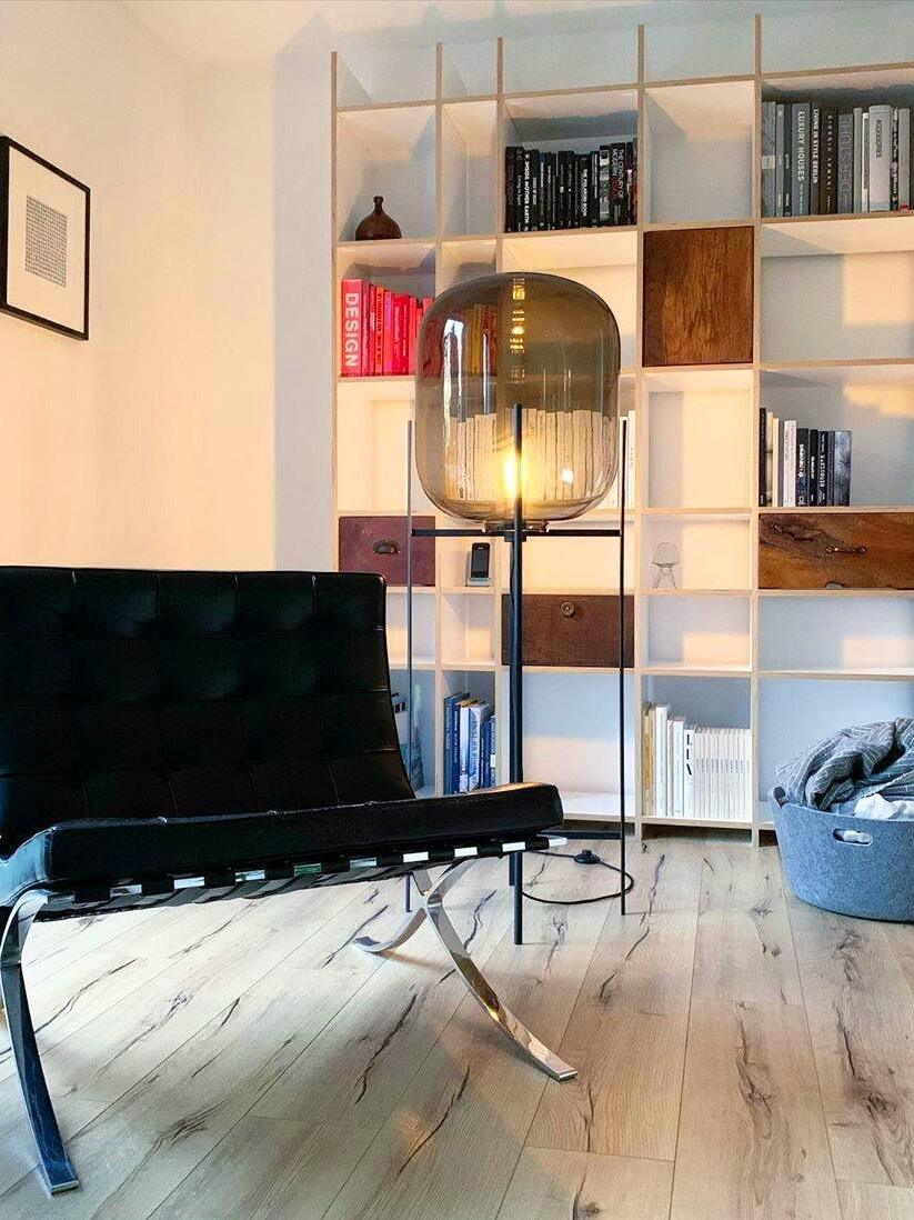 Die industrielle Oda Glasball-LED-Stehlampe ist eine auffällige Synergie aus industrieller Ästhetik und zeitgenössischer Innovation. Mit ihrem schlanken Metallrahmen und dem faszinierenden Glasschirm setzt diese Stehlampe in jedem Raum ein mutiges Statement.