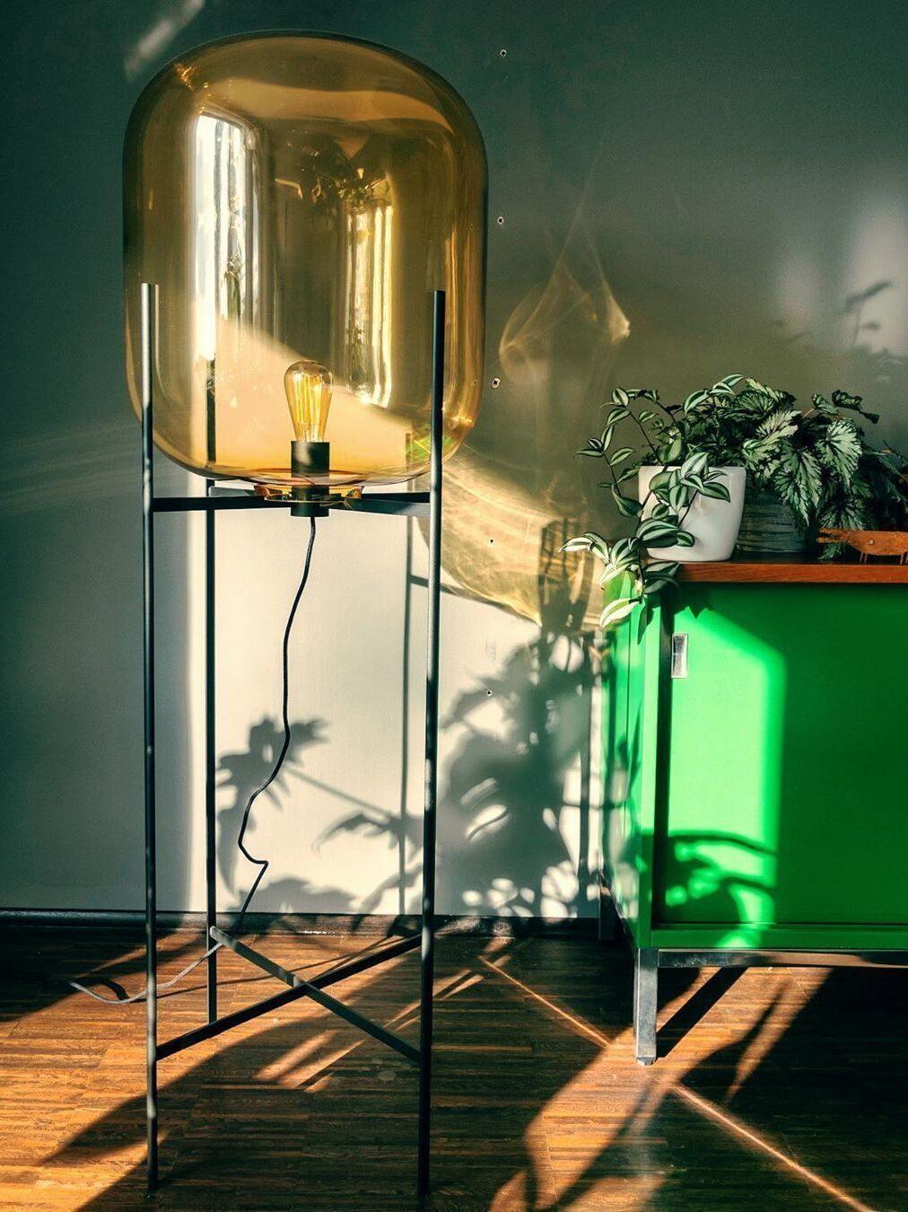 Industrielle Oda Glasball LED Stehlampe