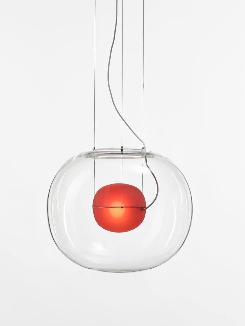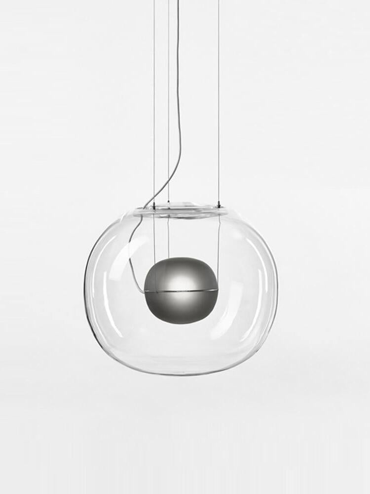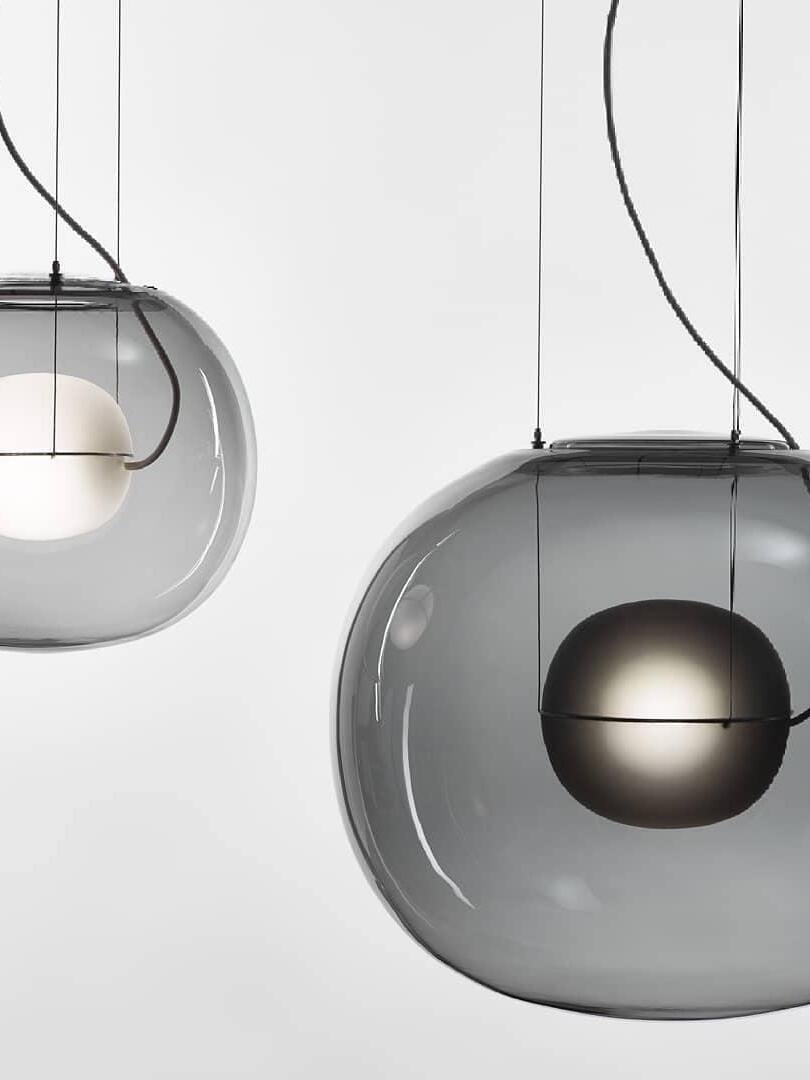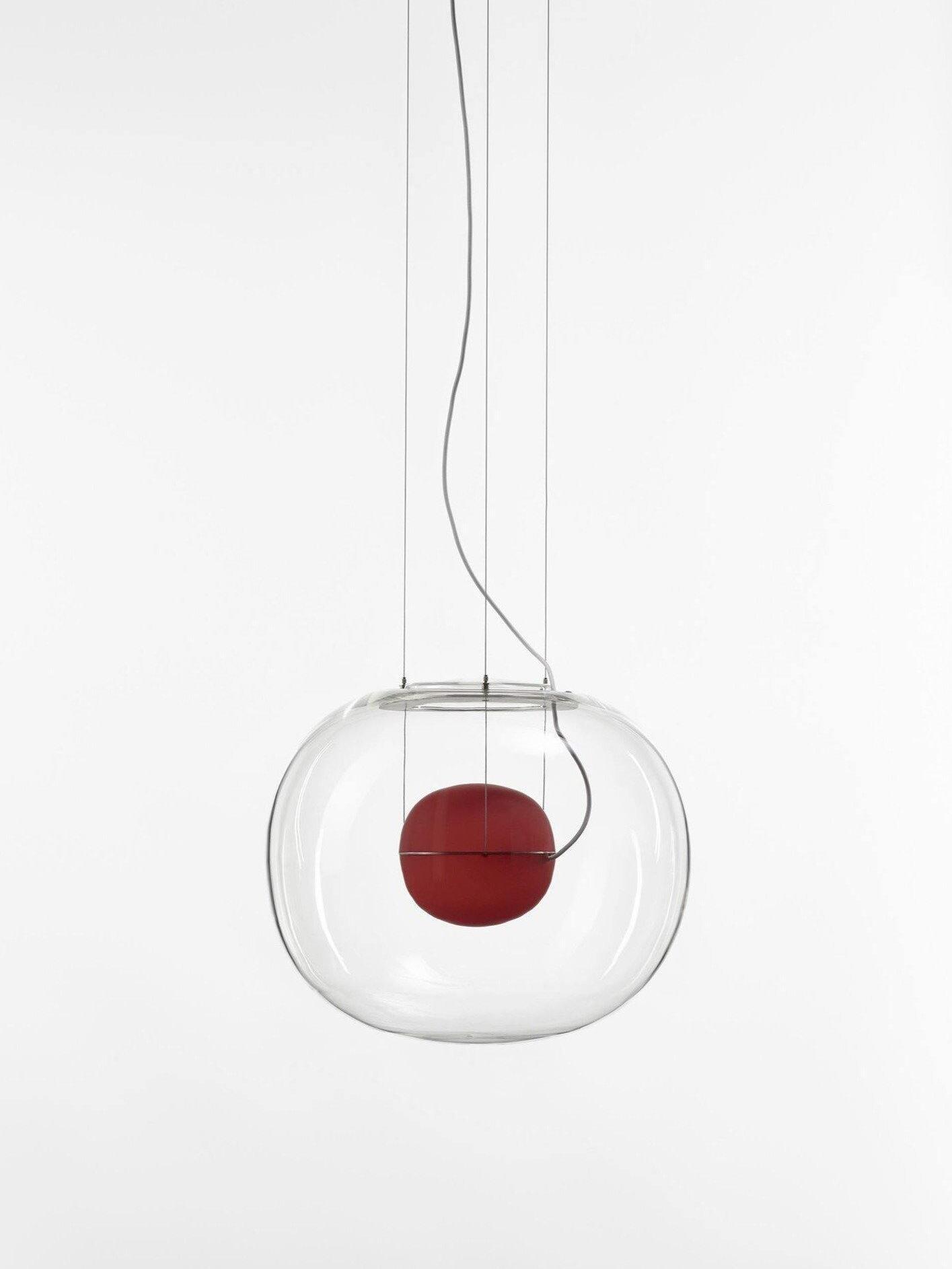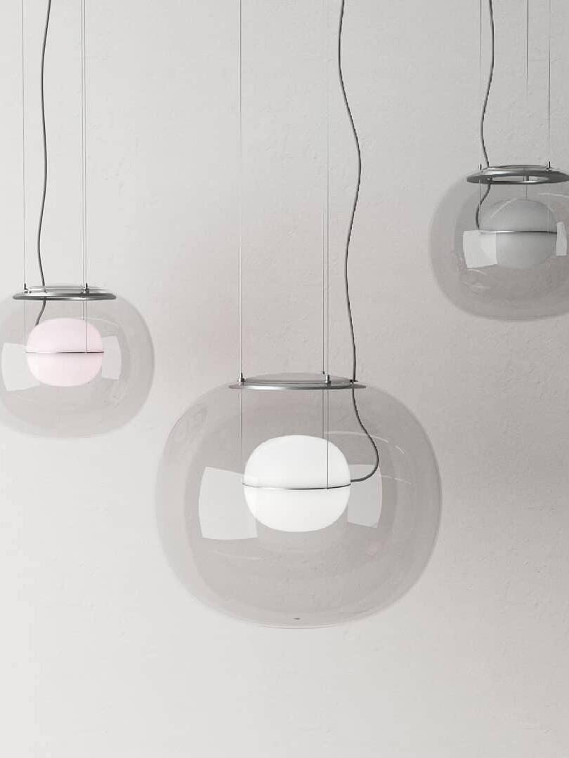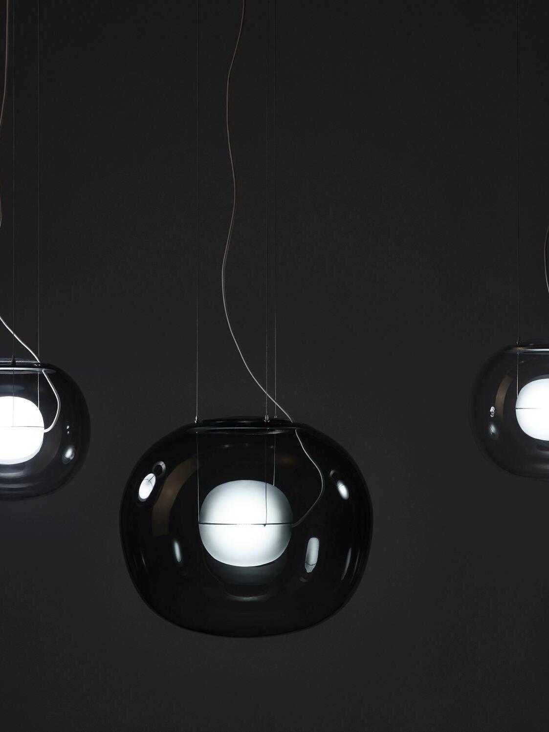 Das raffinierte Design einer Blase, die in der Mitte einer großen Kugel schwebt, erweckt ein Gefühl des Schwebens. Das Außenglas ist in glänzender Ausführung in den Farben transparent und rauchgrau transparent erhältlich. Das Innenglas ist in mattierter Ausführung in den Farben Triplex-Opal, rauchgrau transparent, rot transparent und hellrosa transparent erhältlich. Die Kollektion Big One ist in zwei Größen erhältlich.