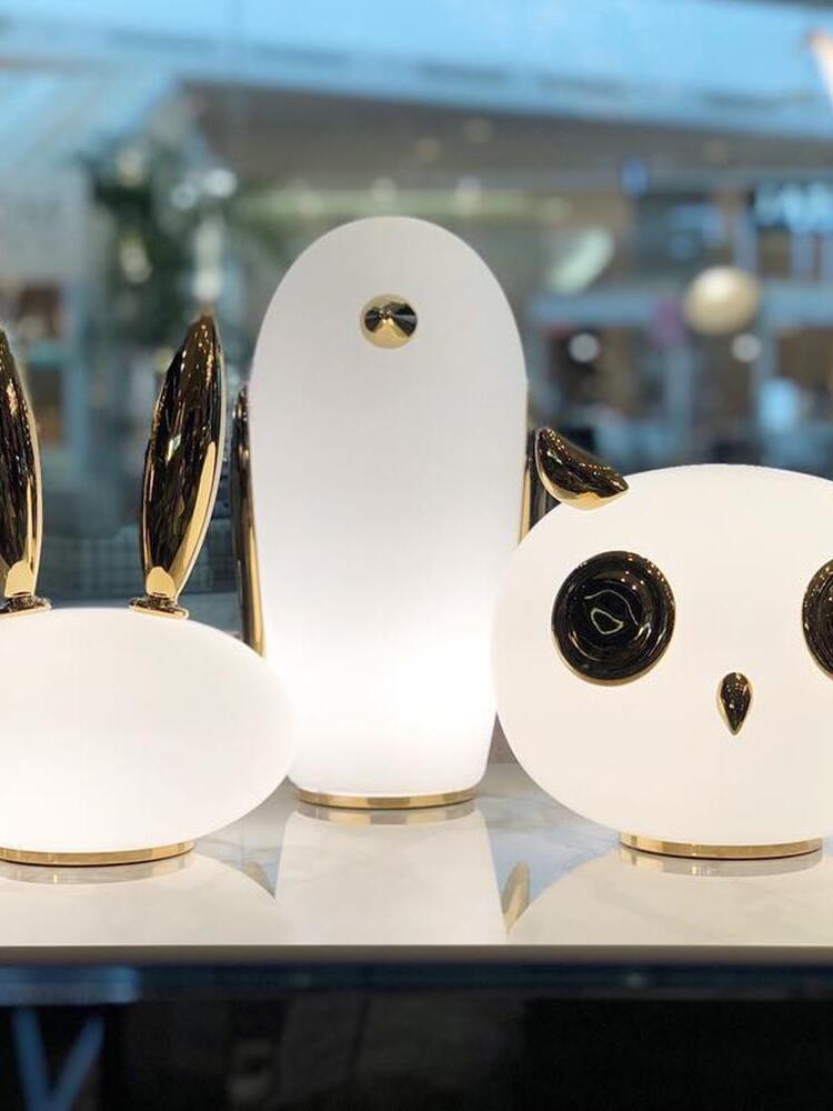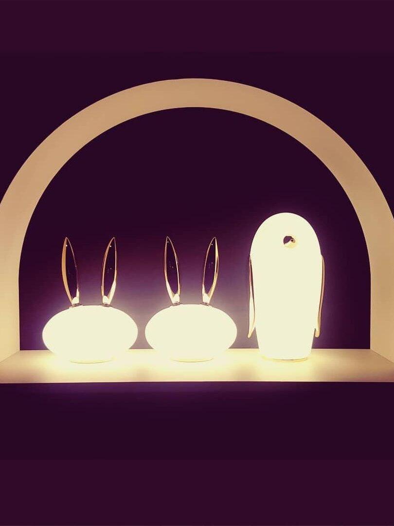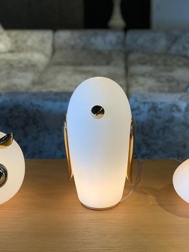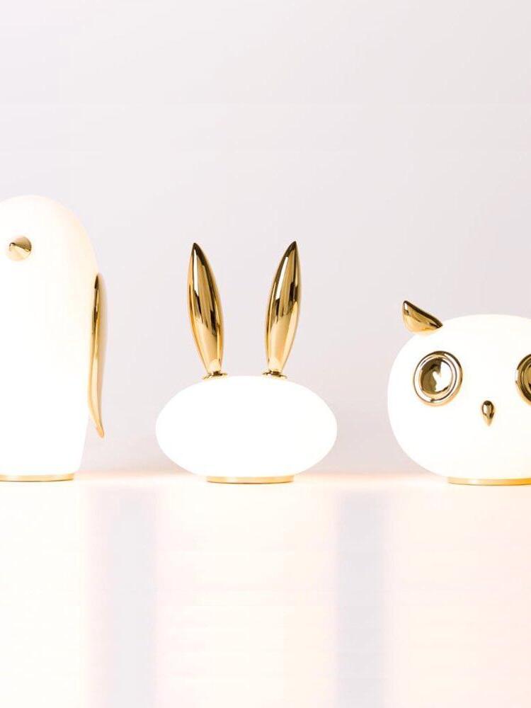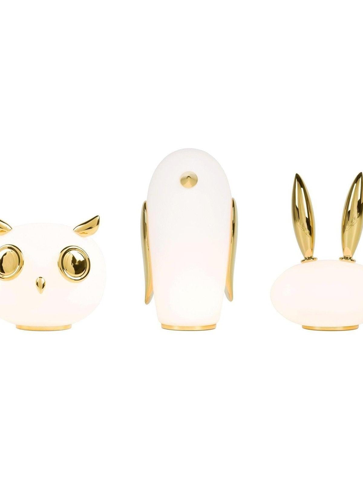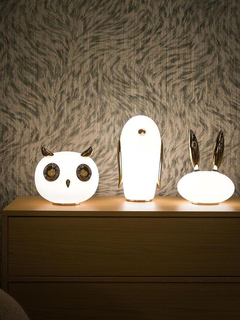 Uhuh, Purr & Noot Noot (Eule, Kaninchen & Pinguin) sind eine Reihe von Tischlampen in Tierform von Designern mit ganz eigenen Persönlichkeiten und Charakteristika. Rund, liebenswert und elegant finden sie in jedem Raumklima und jeder Umgebung ihren Platz. Ihre mattierten Glaskörper, verziert mit einem Hauch von Gold, strahlen ein sonniges, herzerwärmendes Licht aus. Wählen Sie Ihre Lieblingsfiguren aus einem Pinguin, einem Kaninchen und einer Eule und genießen Sie ein Wunderland voller Märchenfiguren mit viel Charme!