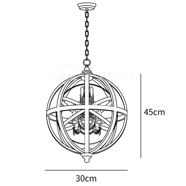 Dieser mutige und einzigartige Retro-Globus-Kronleuchter kombiniert verwittertes Holz, rostfarbenes Metall und Kristalle zu einem perfekten Mix aus rustikalem und industriellem Stil. Ein makelloser Holzglobus, der eine rostfarbene Metallkugel umschließt, beherbergt einen Metallrahmen mit Spiralen, der in der Mitte mit Kristallen akzentuiert ist. Die verwitterte und rostfarbene Oberfläche verstärkt das alte Aussehen. Wenn er leuchtet, schafft er einen warmen, beruhigenden Raum und klare Kristalle verleihen einen Hauch von Glamour.