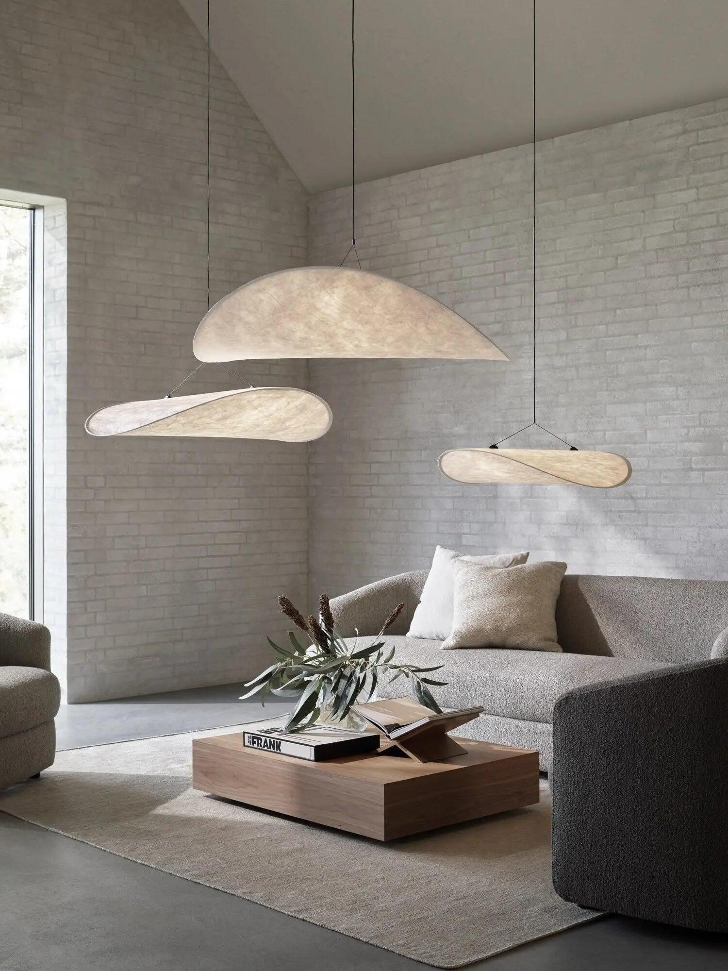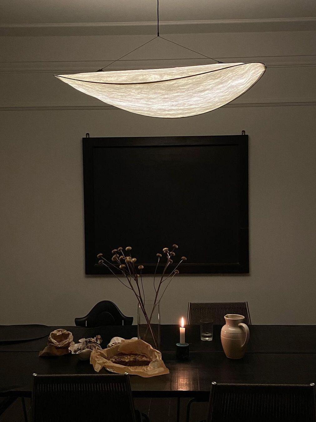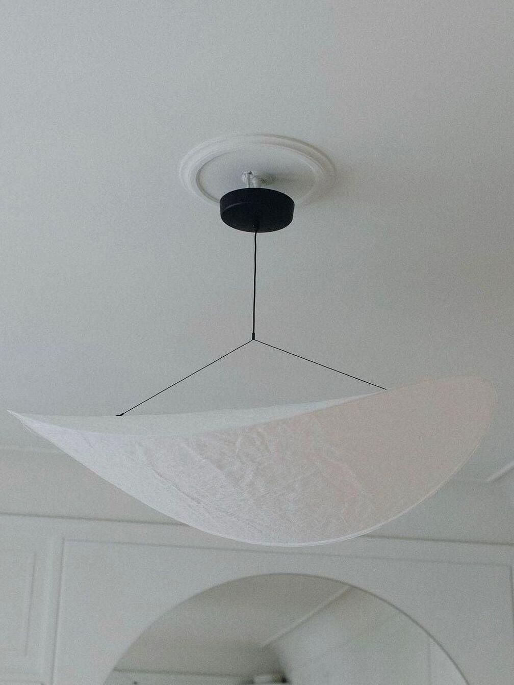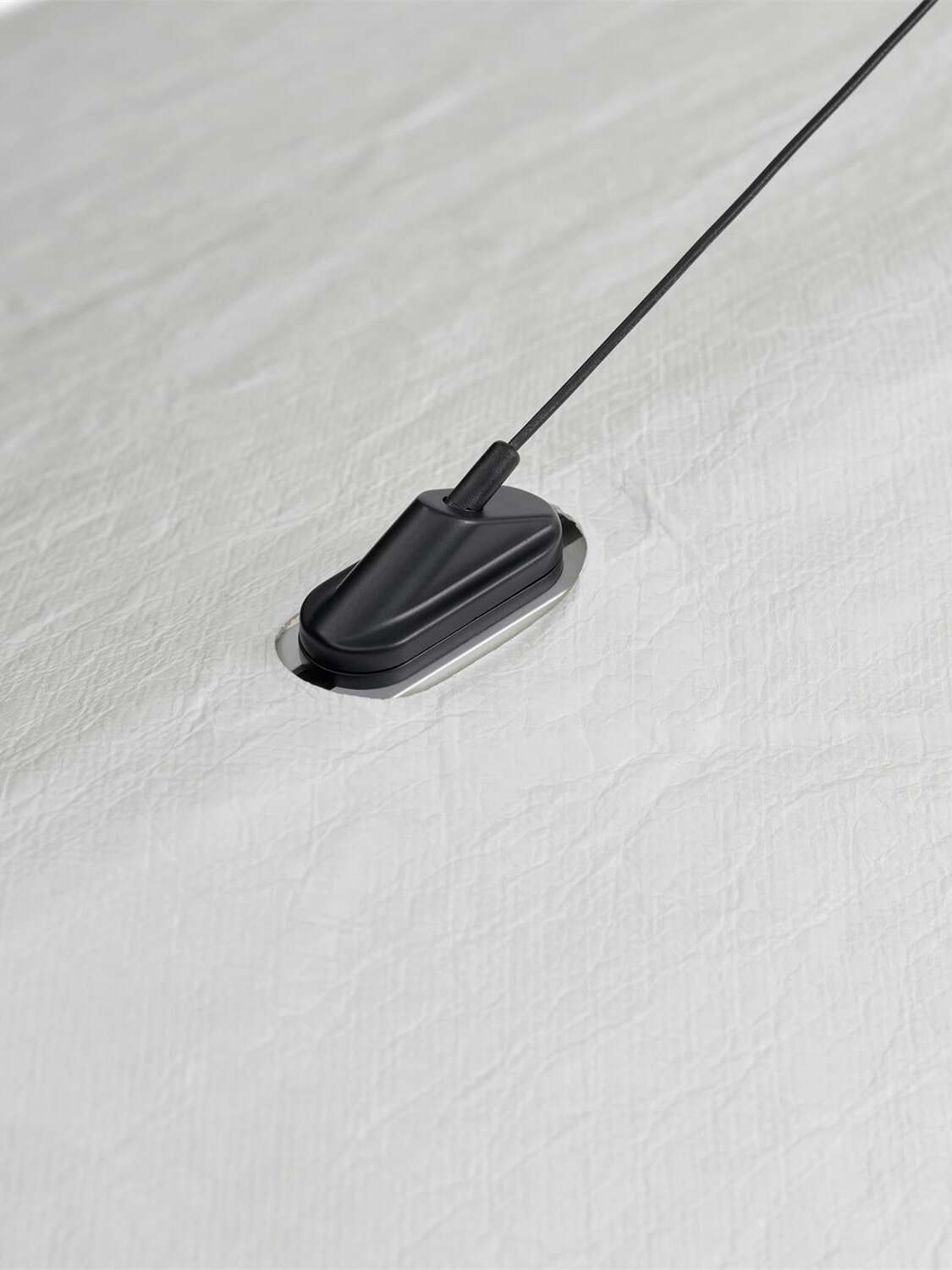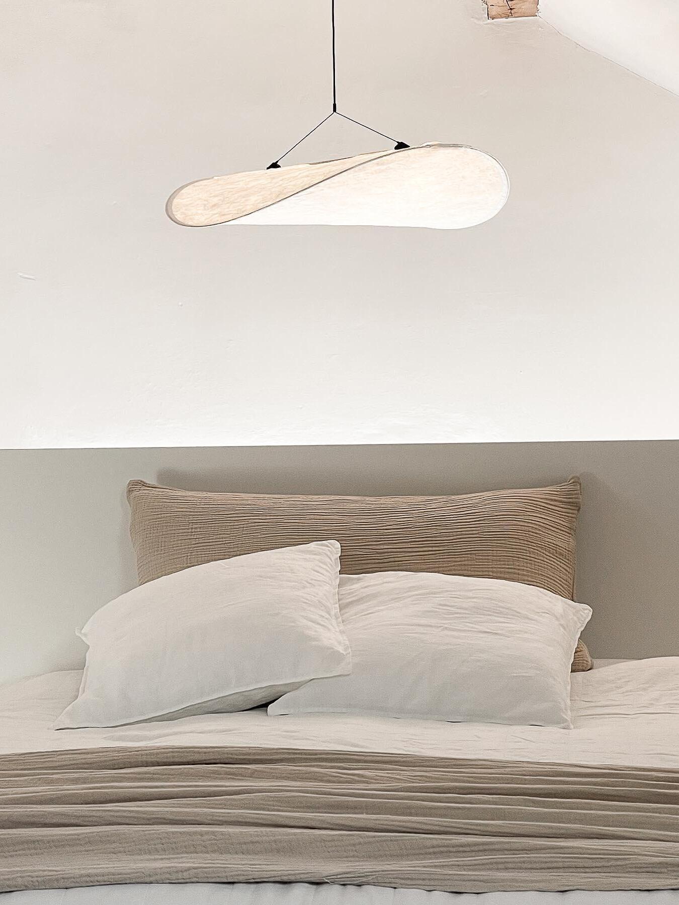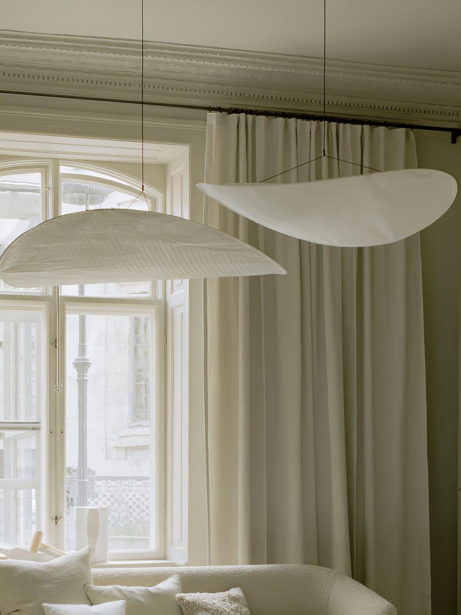 Mit einer Länge von 80 cm wirkt die TENSE Pendelleuchte wie eine sanfte Wolke, die schwebt. Der weiche Tyvek-Diffusor, eine wahrhaft moderne Konstruktion, ist ein langlebiges und dennoch sanftes Material, das zu 100 % recycelbar ist. Die Flexibilität dieses papierähnlichen Schirms ermöglicht es dem schlanken Rahmen, die wolkenartigen Eigenschaften der TENSE Pendelleuchte zu betonen. Die Leuchte ist mit einer schlanken LED-Lichtquelle ausgestattet, und alle Komponenten passen in eine schmale Box für einen einfachen Transport. Ein wirklich moderner Ansatz für Beleuchtung.