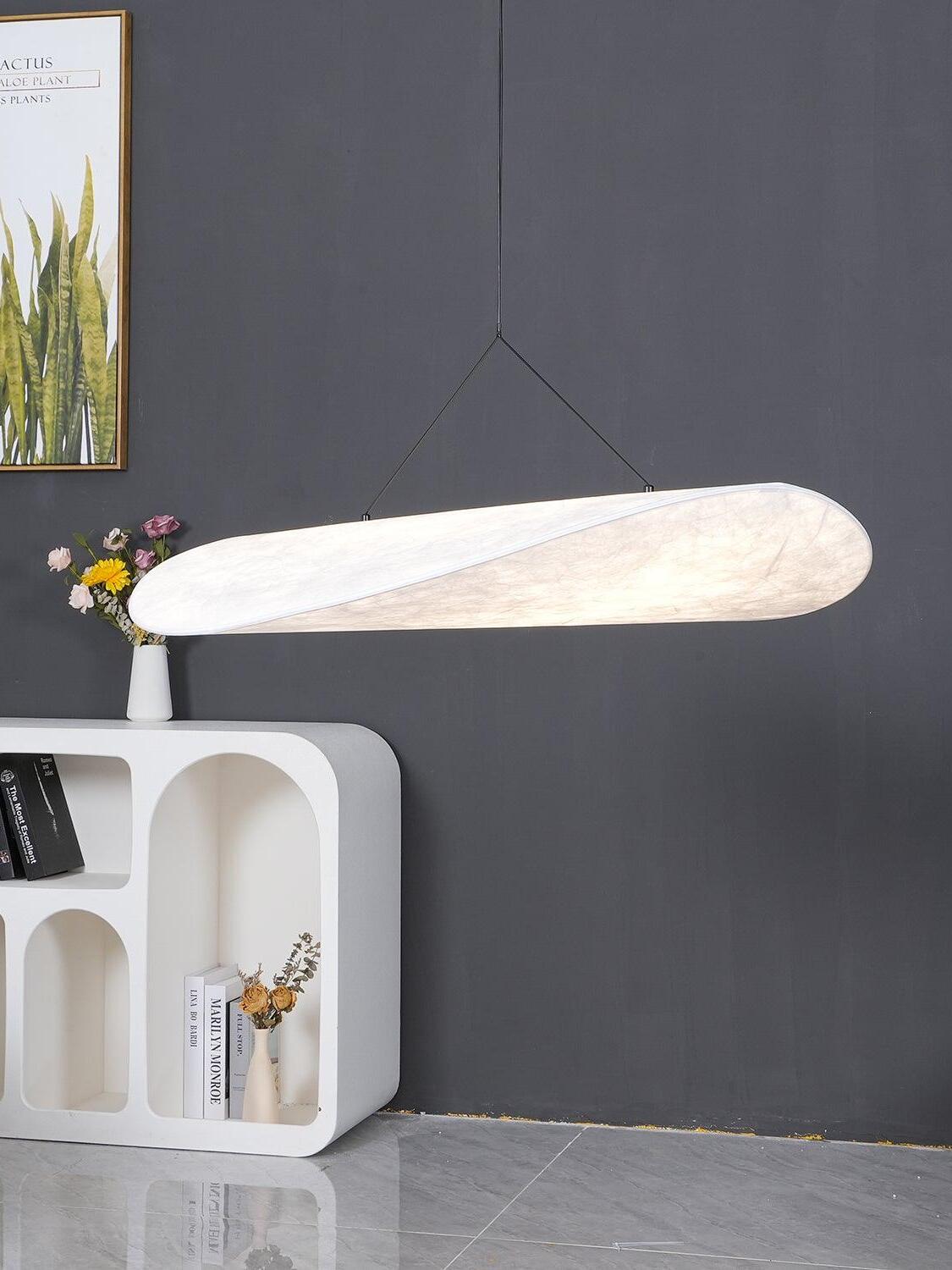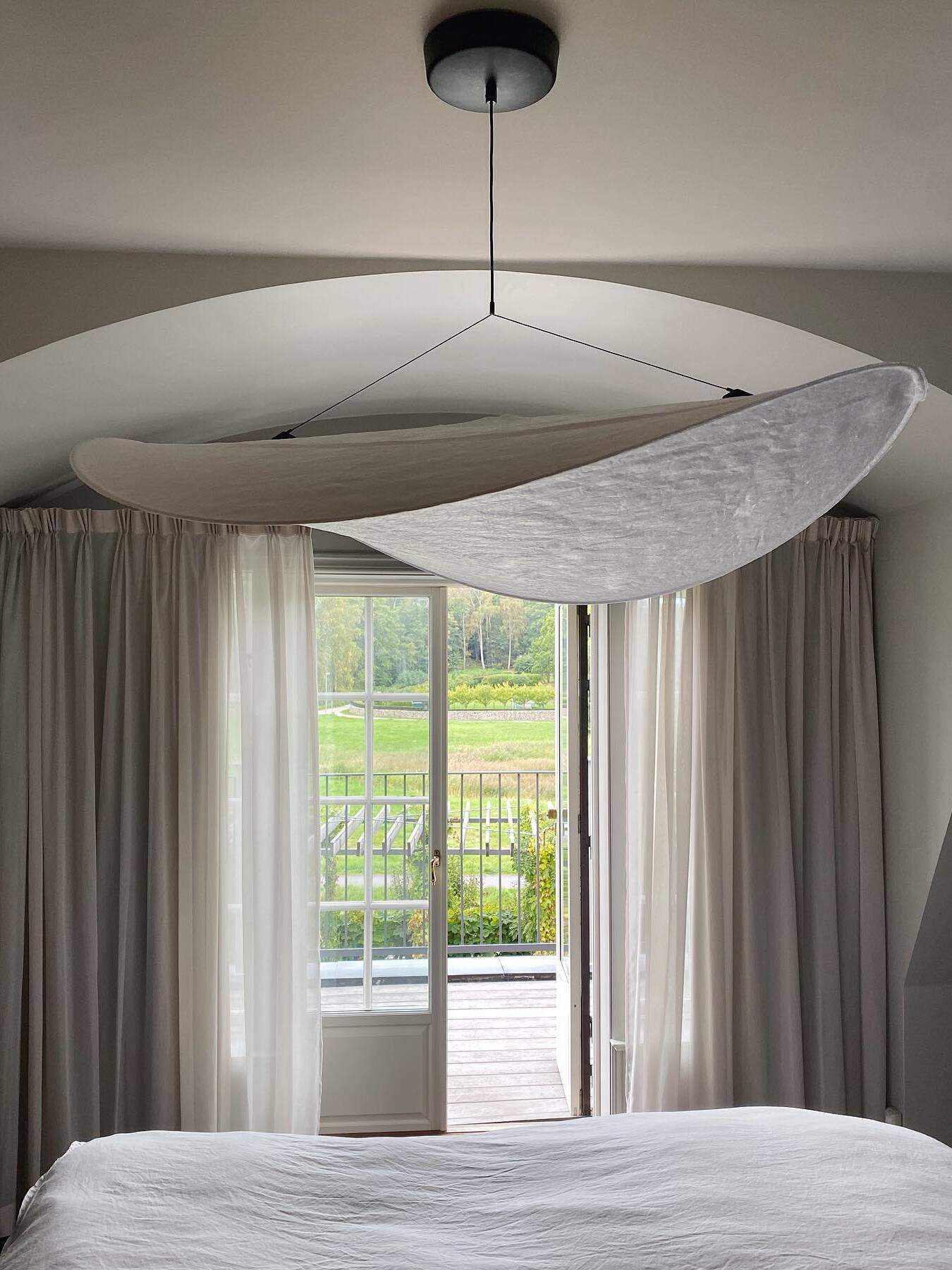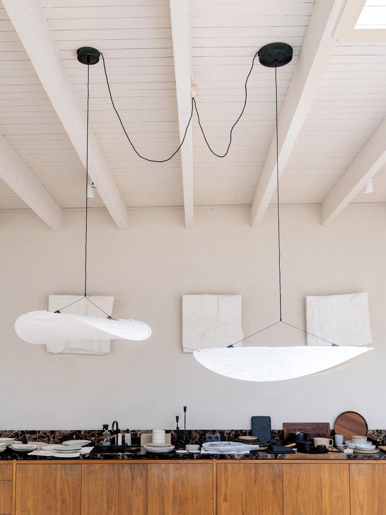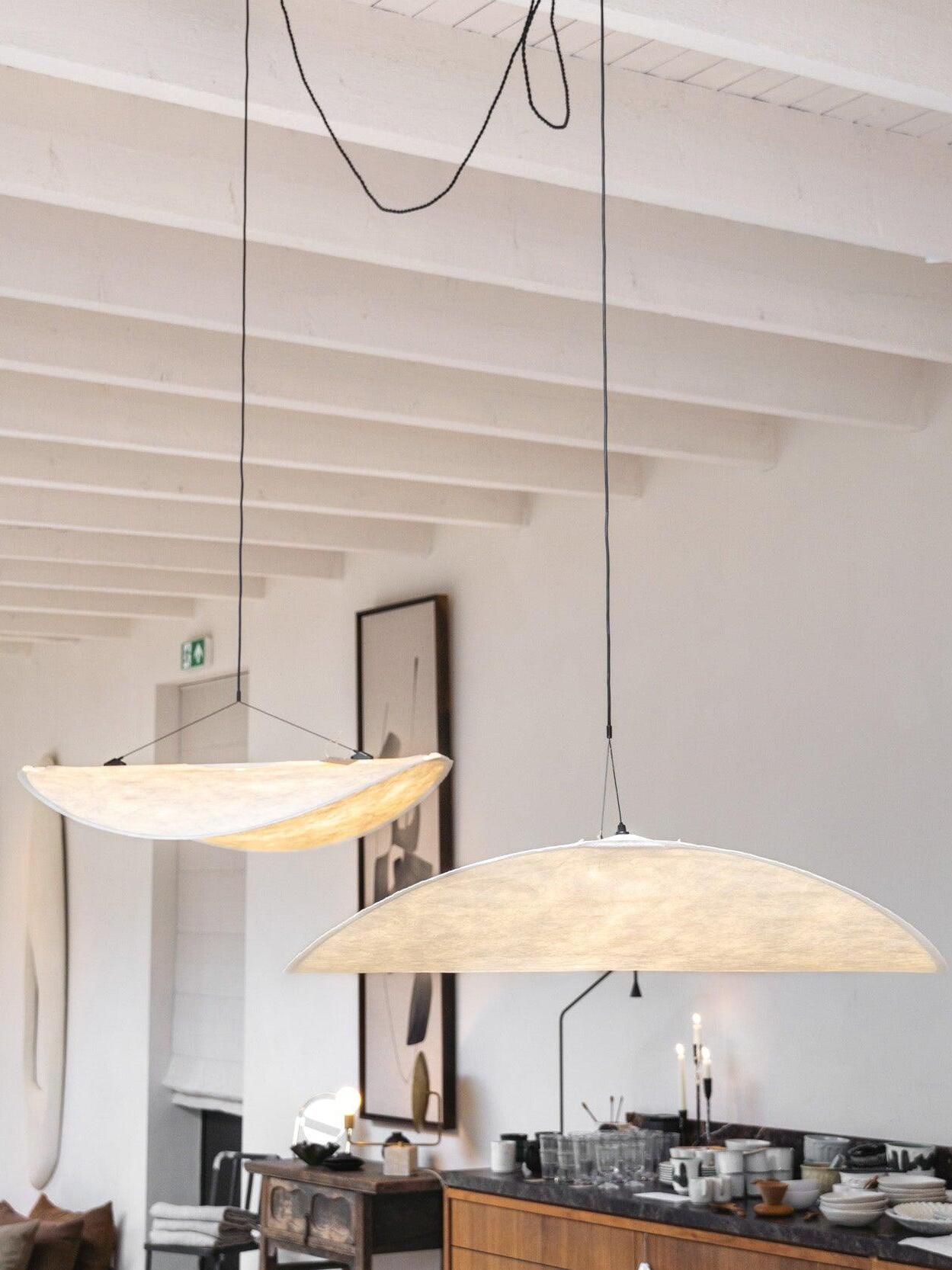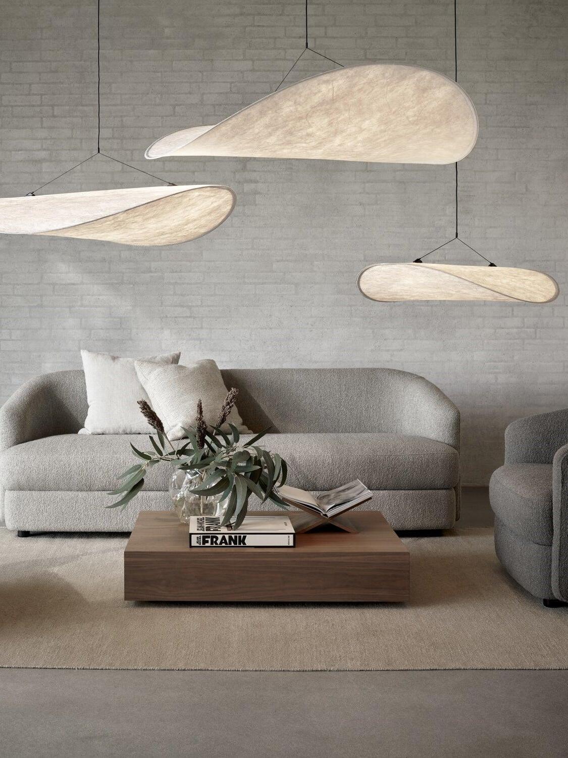 Mit einer Länge von 80 cm wirkt die TENSE Pendelleuchte wie eine sanfte Wolke, die schwebt. Der weiche Tyvek-Diffusor, eine wahrhaft moderne Konstruktion, ist ein langlebiges und dennoch sanftes Material, das zu 100 % recycelbar ist. Die Flexibilität dieses papierähnlichen Schirms ermöglicht es dem schlanken Rahmen, die wolkenartigen Eigenschaften der TENSE Pendelleuchte zu betonen. Die Leuchte ist mit einer schlanken LED-Lichtquelle ausgestattet, und alle Komponenten passen in eine schmale Box für einen einfachen Transport. Ein wirklich moderner Ansatz für Beleuchtung.