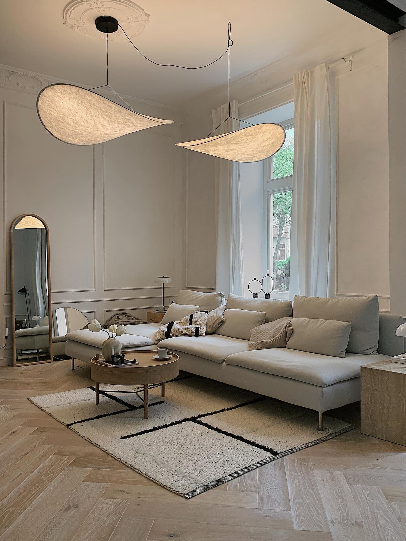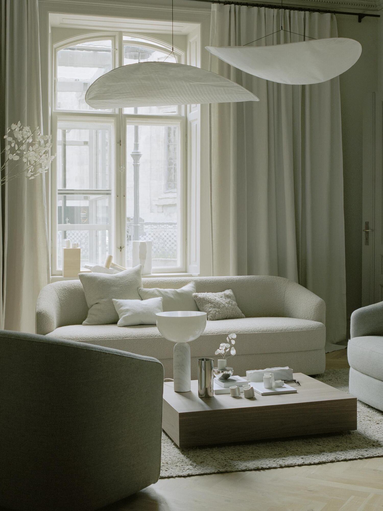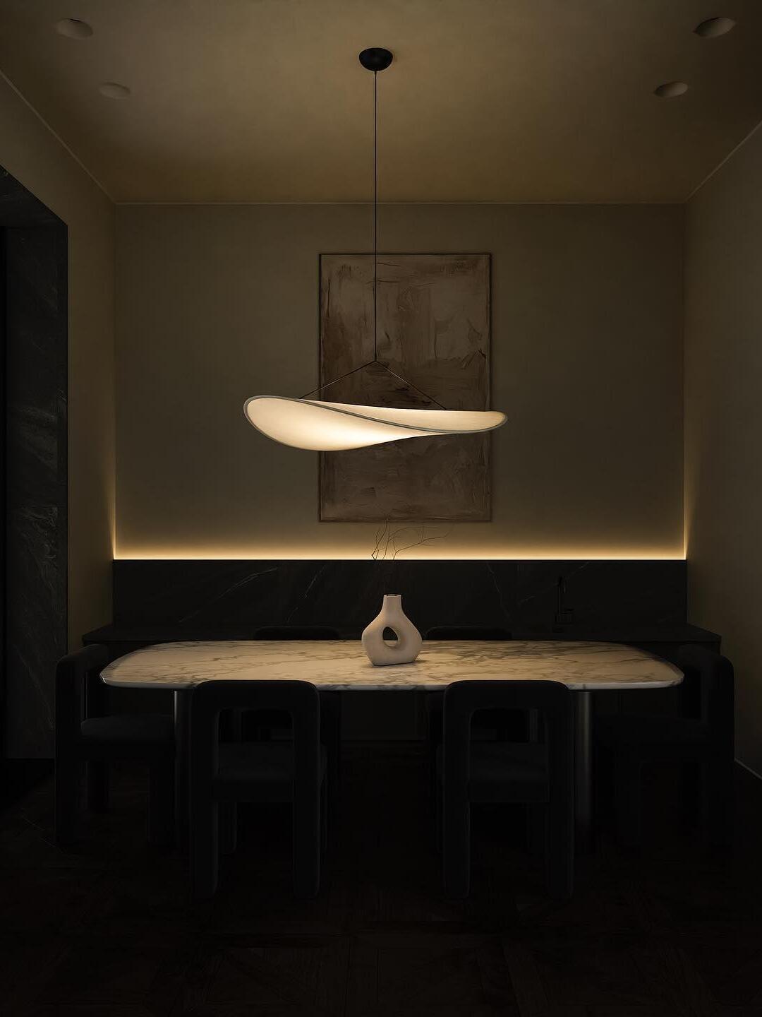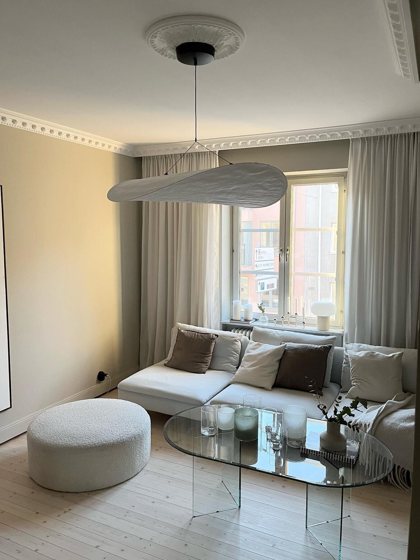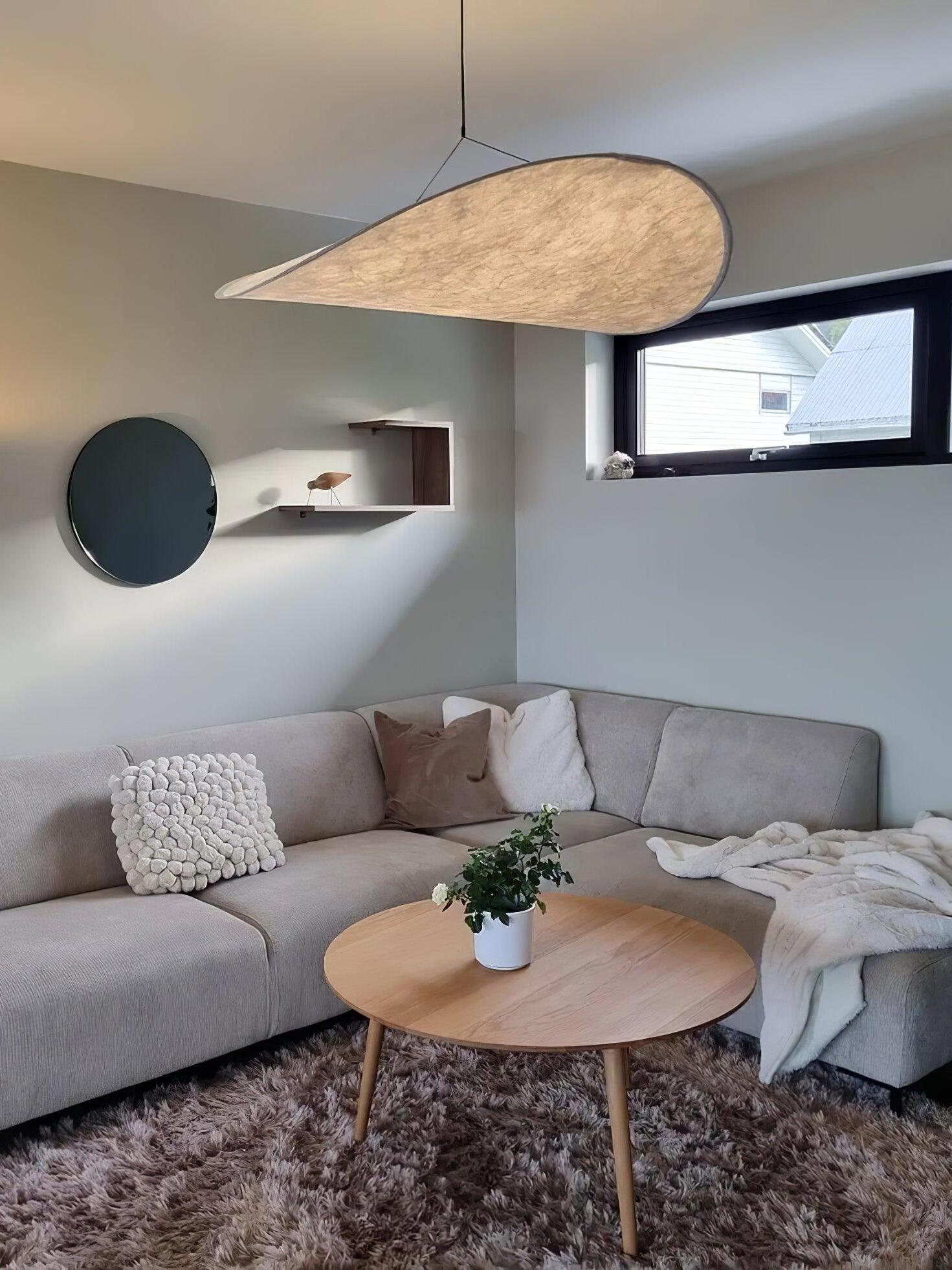 Mit einer Länge von 80 cm wirkt die TENSE Pendelleuchte wie eine sanfte Wolke, die schwebt. Der weiche Tyvek-Diffusor, eine wahrhaft moderne Konstruktion, ist ein langlebiges und dennoch sanftes Material, das zu 100 % recycelbar ist. Die Flexibilität dieses papierähnlichen Schirms ermöglicht es dem schlanken Rahmen, die wolkenartigen Eigenschaften der TENSE Pendelleuchte zu betonen. Die Leuchte ist mit einer schlanken LED-Lichtquelle ausgestattet, und alle Komponenten passen in eine schmale Box für einen einfachen Transport. Ein wirklich moderner Ansatz für Beleuchtung.