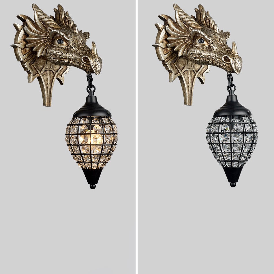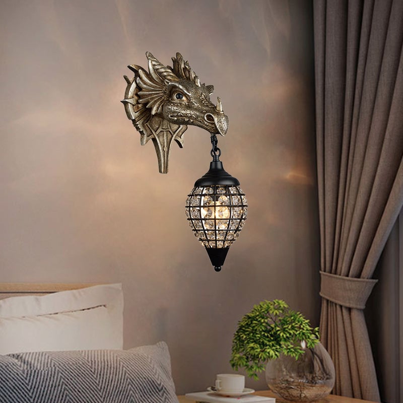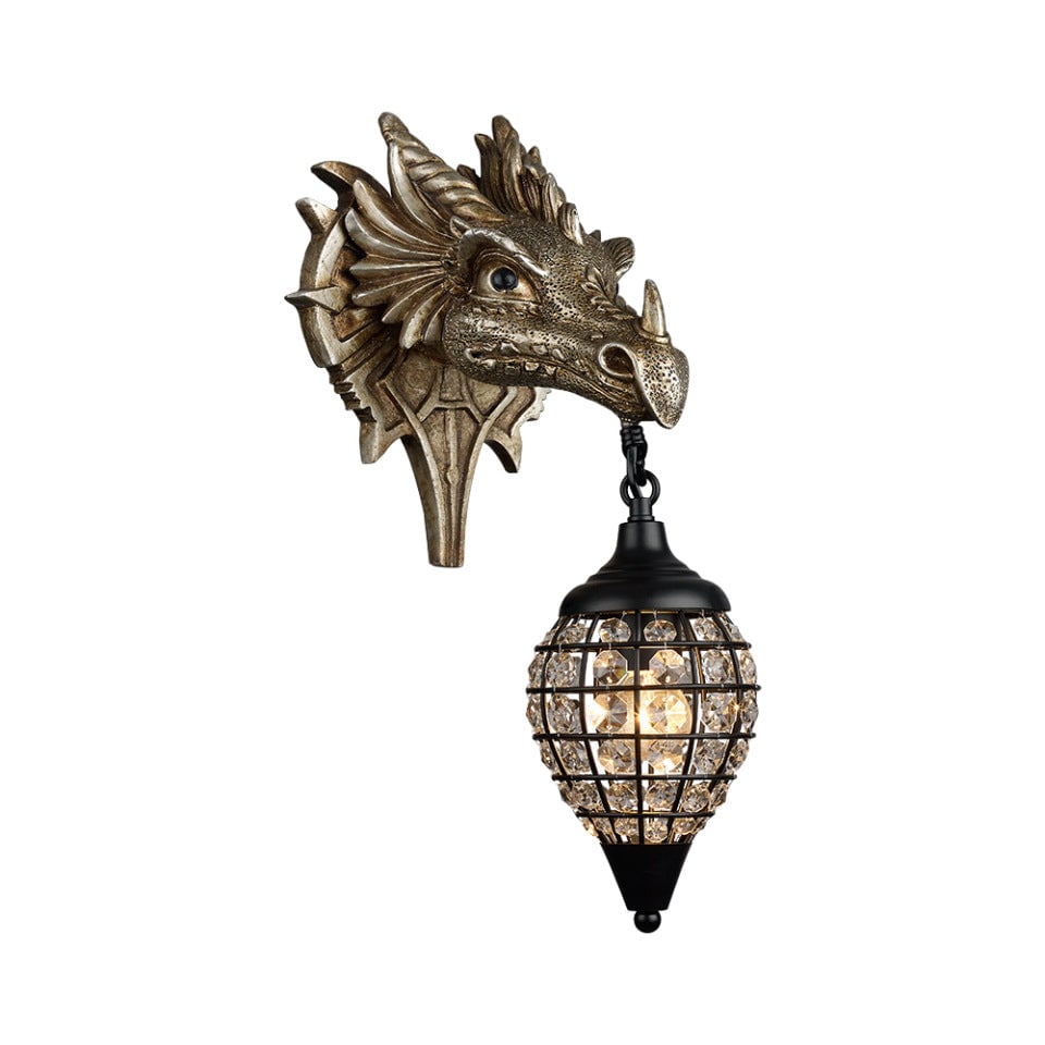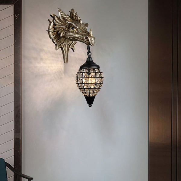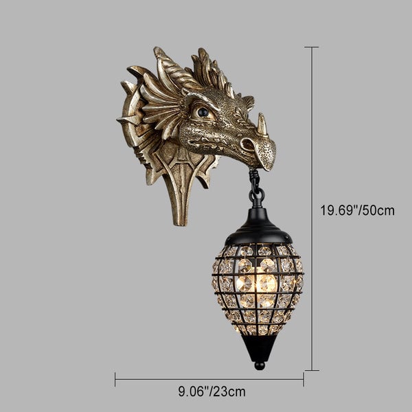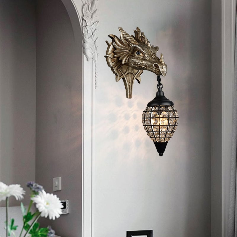 Traditionelle europäische Drachenkristall-Eisenharz-Wandleuchte mit 1 Licht für das Wohnzimmer