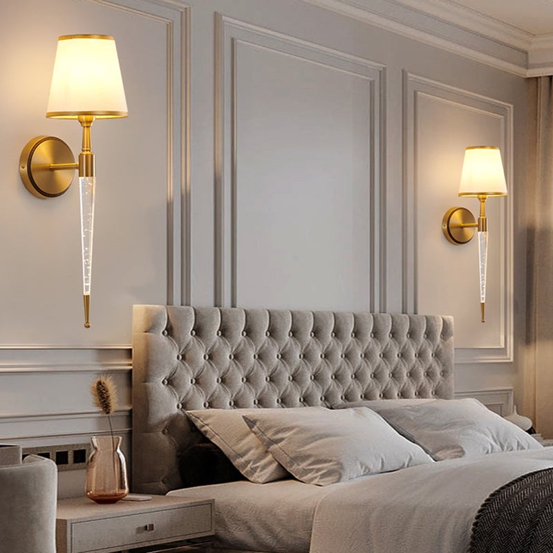 Traditionelle französische trapezförmige Kupferstoff-Wandleuchte mit 1 Licht für das Wohnzimmer
