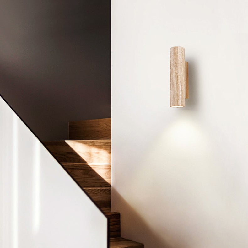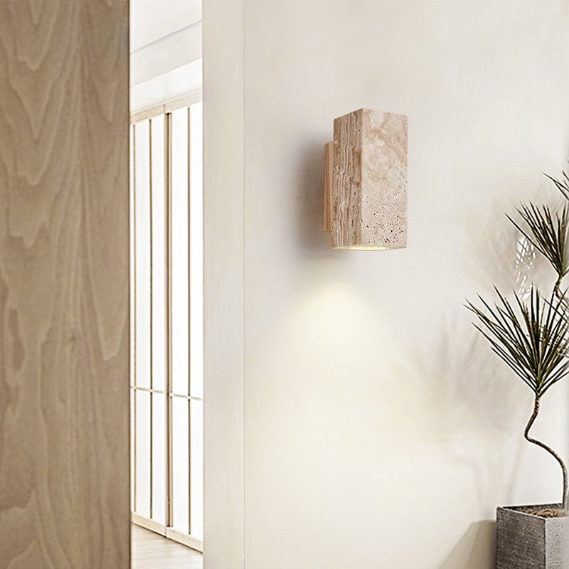 Traditionelle japanische kubische Zylinder-Wandleuchte mit 1 Licht aus Dolomitholz für den Nachttisch