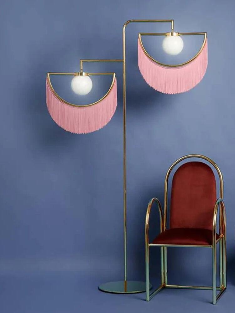 Eine postmoderne Inspiration für diesen glamourösen und Retro-Anhänger. Wink ist eine Anspielung auf die Vergangenheit und die Gegenwart und symbolisiert ein umgekehrtes Auge. Dieser raffinierte und unkonventionelle Anhänger ist mit bunten Stofffransen verziert und greift das Boudoir-Thema und den Stil der 30er Jahre mit viel Modernität auf.