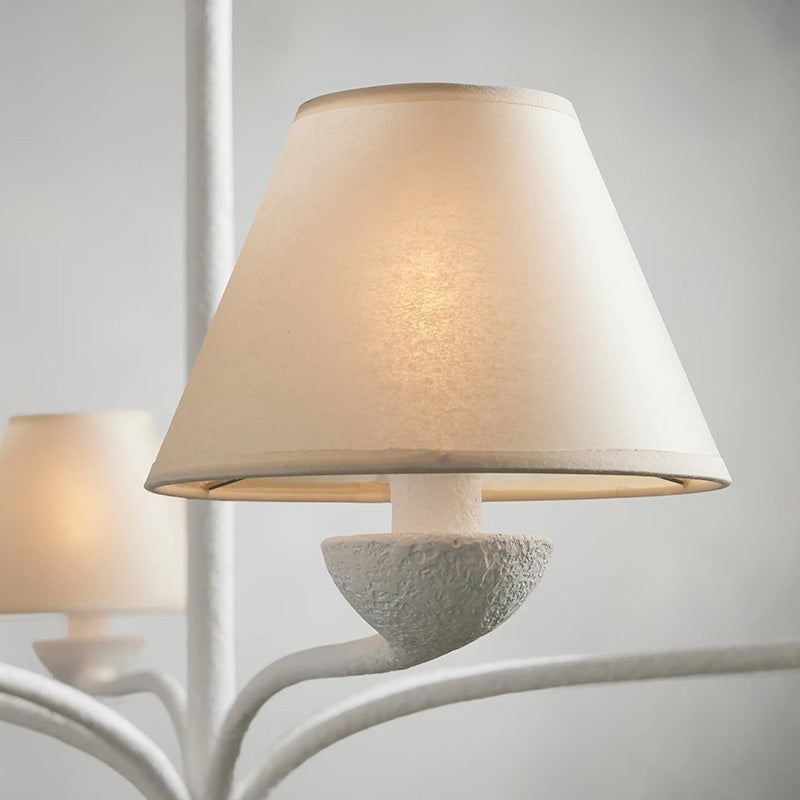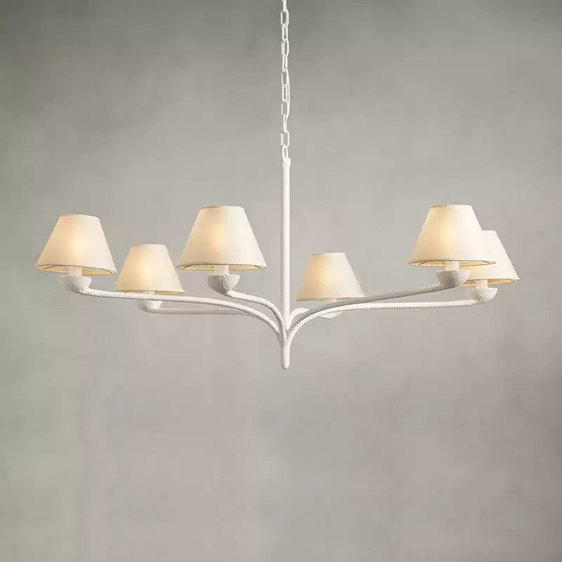 The Dorsey Round 6-Light Chandelier presents a simple and modern design that suits a variety of interior styles. Its round metal frame elegantly encloses six lamp holders, each with a delicate lampshade, for a stylish and layered look. The polished texture of the metal frame complements the soft light of the lampshade, bringing a warm halo and a cozy atmosphere to the space.