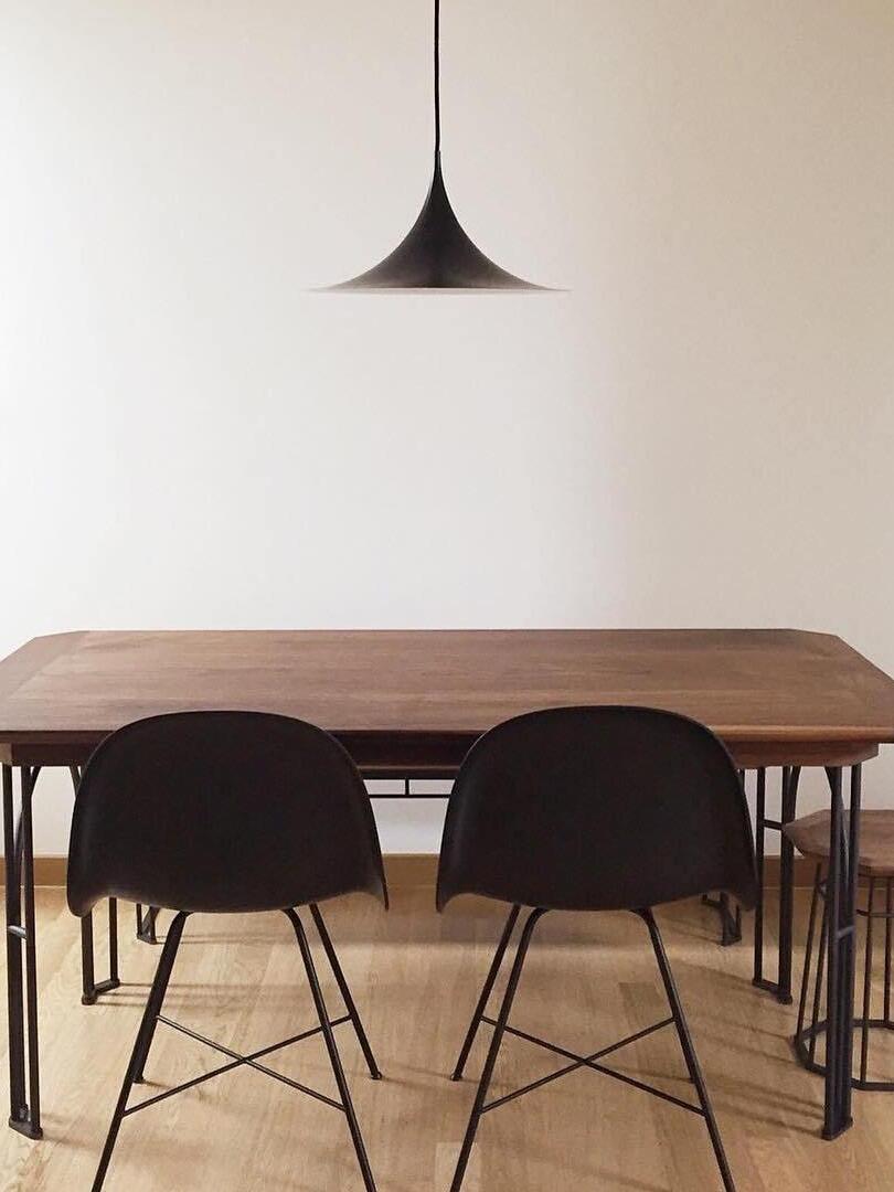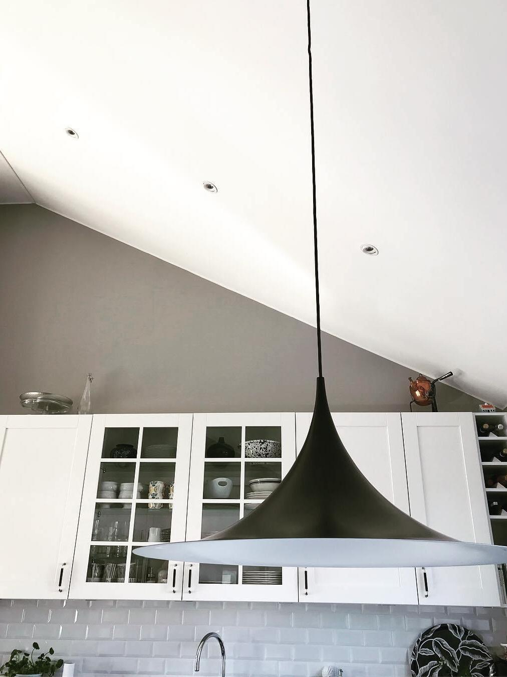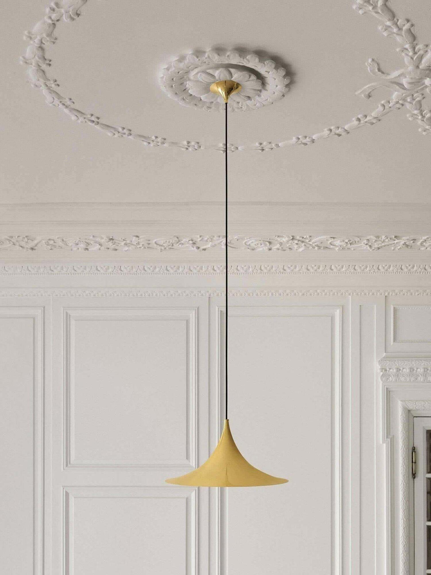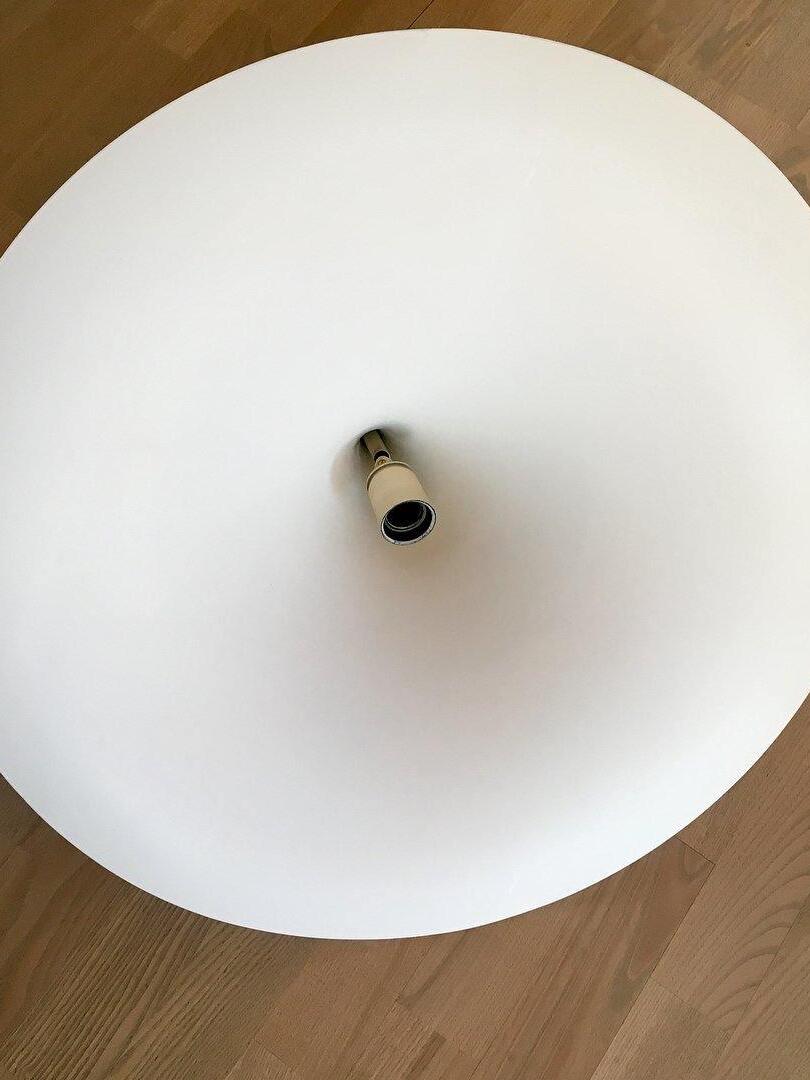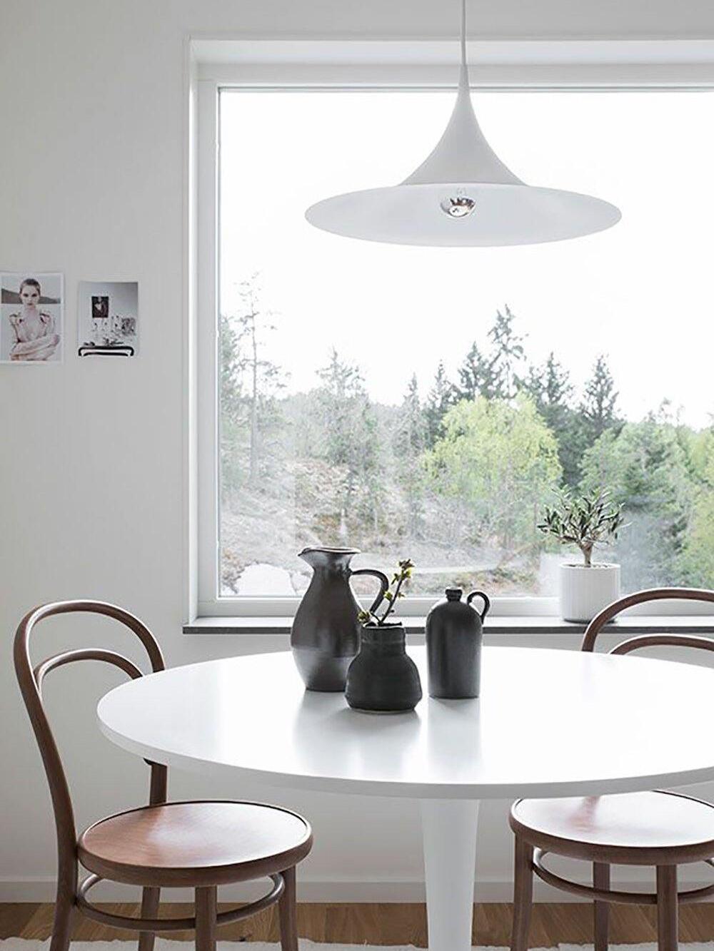 Semi is a unique pendant lamp, based on two quarter-circles put together, back-to-back. With its distinctive arch-shaped, enameled metal shade, lightness of form and unique, timeless design, the elegant Semi lamp achieved great success in the 1980's and became, at that time, the best-selling Danish design, gaining worldwide recognition and iconic status. It´s distinctive arch-shaped shade in lacquered, spun aluminum creates a diffused, cone-shaped light, ideal over a dining table or kitchen work surface.