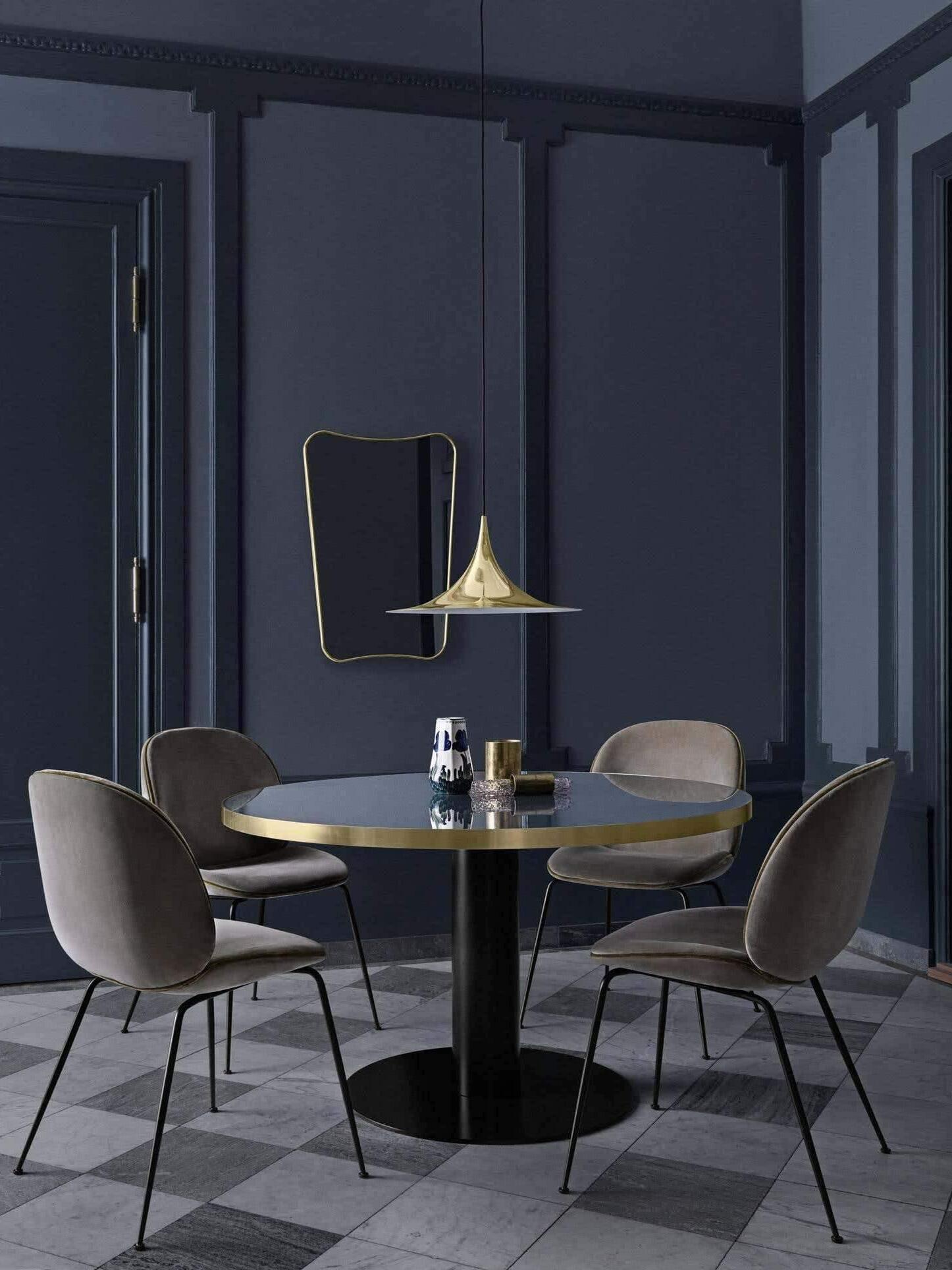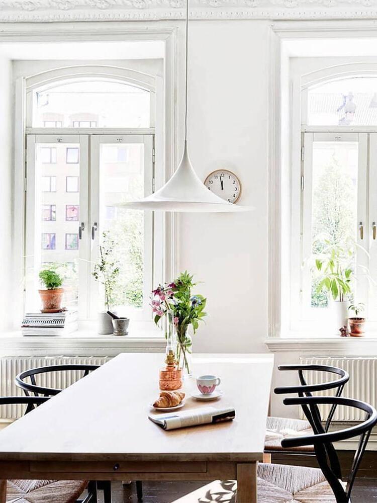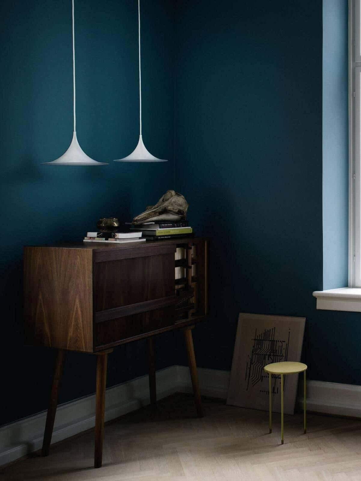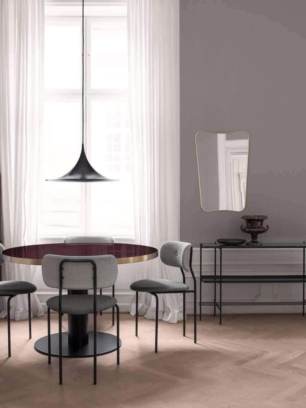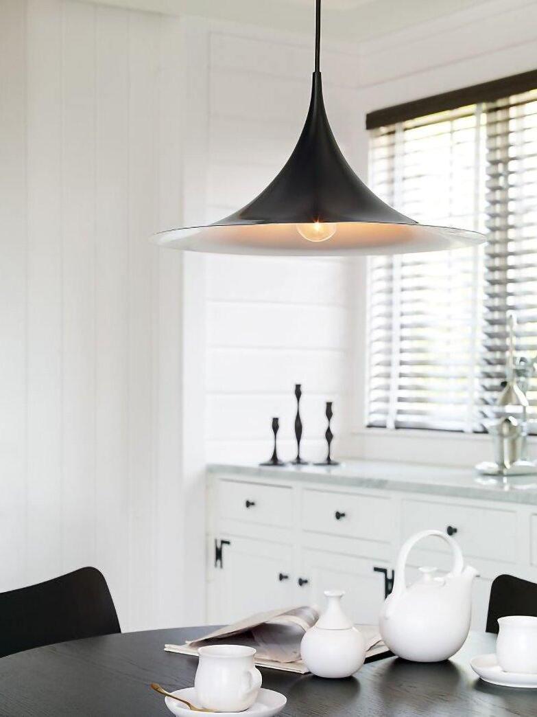 Semi is a unique pendant lamp, based on two quarter-circles put together, back-to-back. With its distinctive arch-shaped, enameled metal shade, lightness of form and unique, timeless design, the elegant Semi lamp achieved great success in the 1980's and became, at that time, the best-selling Danish design, gaining worldwide recognition and iconic status. It´s distinctive arch-shaped shade in lacquered, spun aluminum creates a diffused, cone-shaped light, ideal over a dining table or kitchen work surface.